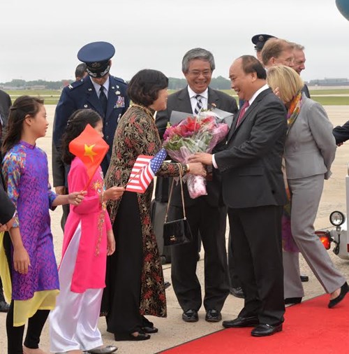 Đón Thủ tướng và đoàn tại sân bay có đại diện Bộ Ngoại giao Hoa Kỳ, Đại sứ Hoa Kỳ tại Việt Nam Ted Osisus, Đại sứ Việt Nam tại Hoa Kỳ Phạm Quang Vinh cùng cán bộ, nhân viên Đại sứ quán và bà con kiều bào.