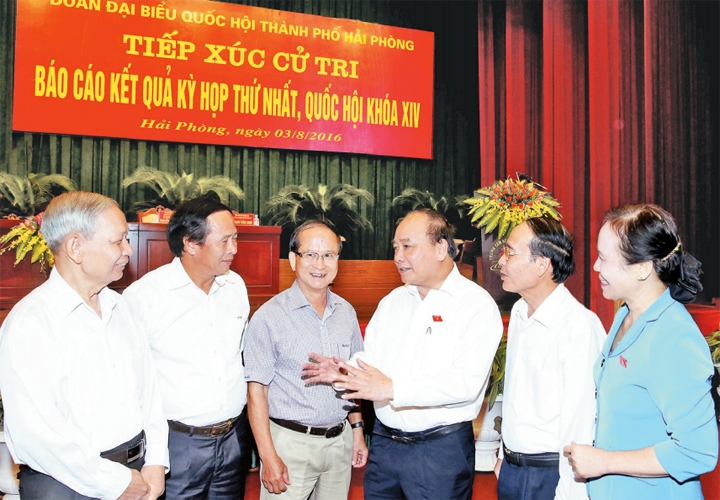 Sáng 3-8, tại Hải Phòng, Thủ tướng Chính phủ Nguyễn Xuân Phúc cùng Đoàn đại biểu Quốc hội (QH) TP Hải Phòng đã tiếp xúc cử tri thành phố, báo cáo kết quả kỳ họp thứ nhất, QH khóa XIV và trao đổi nhiều nội dung mà cử tri quan tâm. Tham gia buổi tiếp xúc có các đồng chí Ủy viên T.Ư Đảng: Thuận Hữu, Tổng Biên tập Báo Nhân Dân, Chủ tịch Hội Nhà báo Việt Nam; Lê Văn Thành, Bí thư Thành ủy, Chủ tịch HĐND thành phố Hải Phòng cùng đông đảo đại diện lãnh đạo các cấp, ngành, địa phương và nhân dân thành phố.