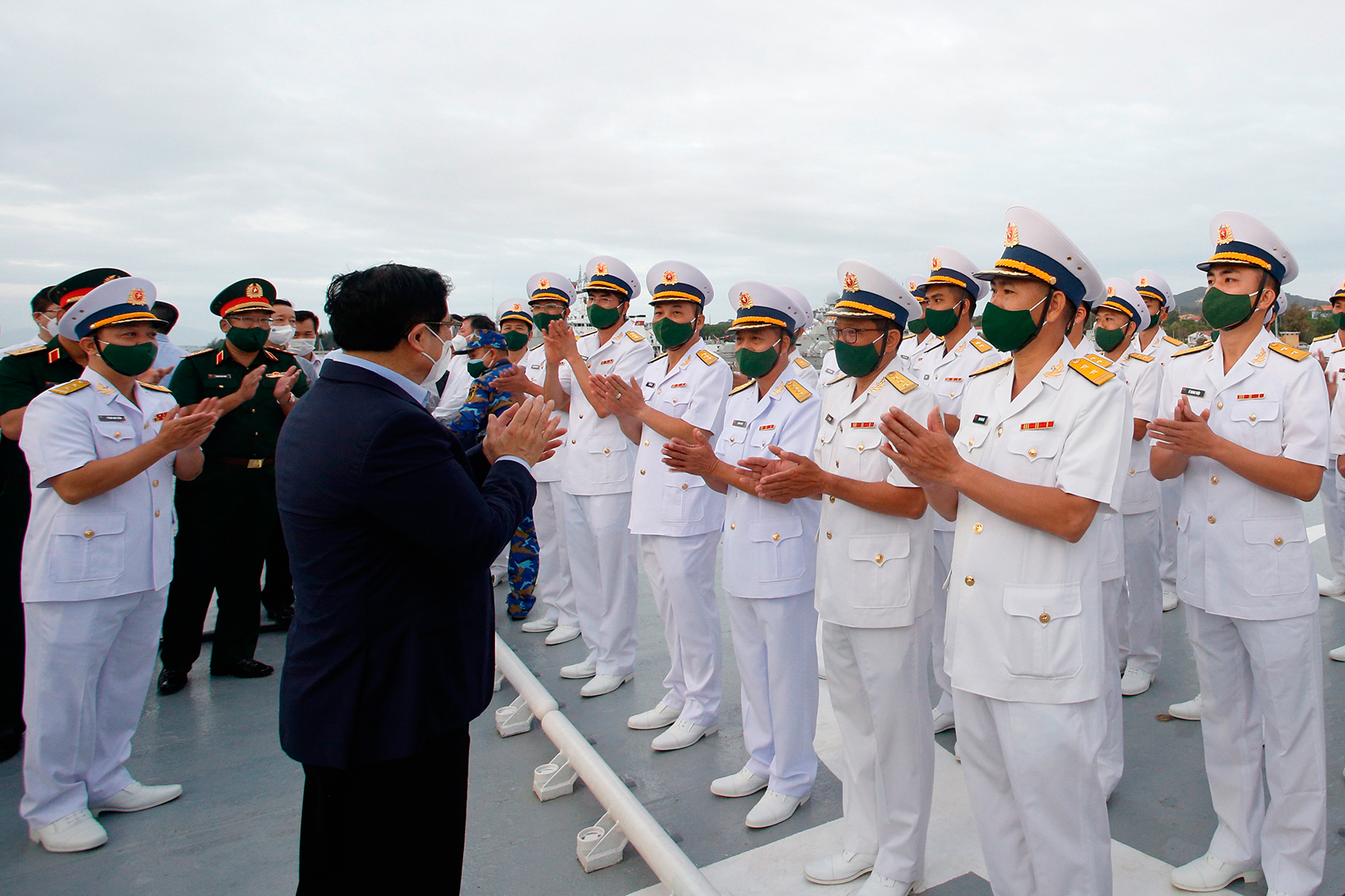 Thủ tướng yêu cầu Quân chủng Hải quân tiếp tục đoàn kết, thống nhất, chủ động nắm chắc, dự báo đúng tình hình, kịp thời tham mưu với Quân ủy Trung ương, Bộ Quốc phòng những chủ trương giải pháp và trực tiếp xử lý các tình huống trên biển từ sớm, từ xa, không để bị động bất ngờ trong mọi tình huống; bảo vệ chủ quyền biển đảo, các mục tiêu chiến lược, hoạt động kinh tế biển, giữ vững môi trường hòa bình, ổn định trên biển để phát triển.