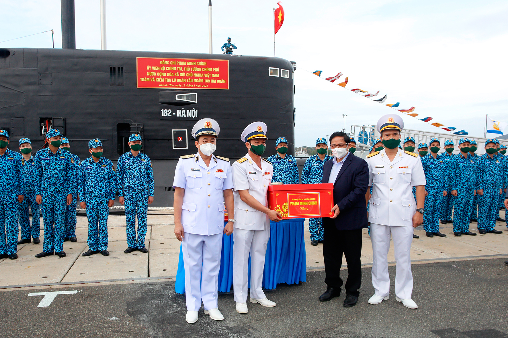 Chiều 12/3, tại TP.Cam Ranh, tỉnh Khánh Hòa, đồng chí Phạm Minh Chính, Ủy viên Bộ Chính trị, Thủ tướng Chính phủ đã đến thăm, kiểm tra tại Lữ đoàn Tàu ngầm 189 và Lữ đoàn 162 (Vùng 4 Hải quân).