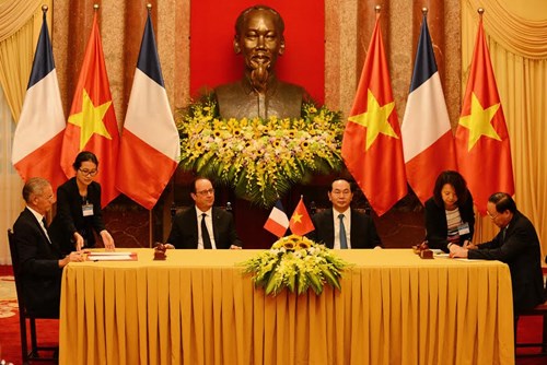 Sau hội đàm, Chủ tịch nước Trần Đại Quang và Tổng thống Francois Hollande đã chứng kiến Lễ ký kết, trao đổi các văn kiện, thỏa thuận hợp tác giữa hai nước trên các lĩnh vực tương trợ tư pháp, dẫn độ, hợp tác tư pháp, đào tạo cán bộ, nông nghiệp, giảng dạy tiếng Pháp, ứng phó với biến đổi khí hậu, cung cấp máy bay chở khách Airbus, viễn thông, vệ tinh, phát triển cơ sở hạ tầng…