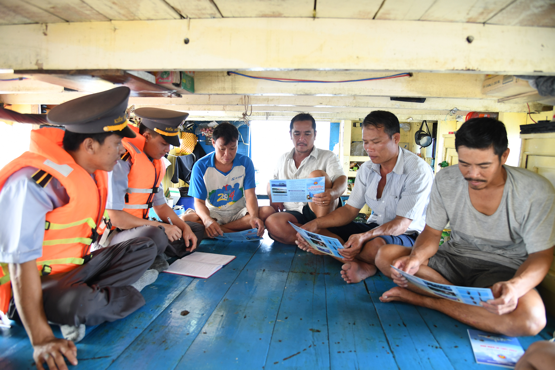 Xác định công tác tuyên truyền, phổ biến pháp luật, hướng dẫn bà con ngư dân đánh bắt đúng quy định của Nhà nước là một nhiệm vụ rất quan trọng. Trong quá trình tuần tra, kiểm soát khu vực, khi gặp được tàu cá ngư dân ta, các tàu của Chi đội chủ động tiếp cận, cấp phát tài liệu, tờ rơi và trực tiếp giới thiệu, trao đổi, hướng dẫn cho bà con các nội dung về Luật Biển Việt Nam, Luật Thủy sản, các vùng biển giáp ranh, vùng biển chồng lấn hoặc đang có tranh chấp để ngư dân không vi phạm khi đánh bắt.