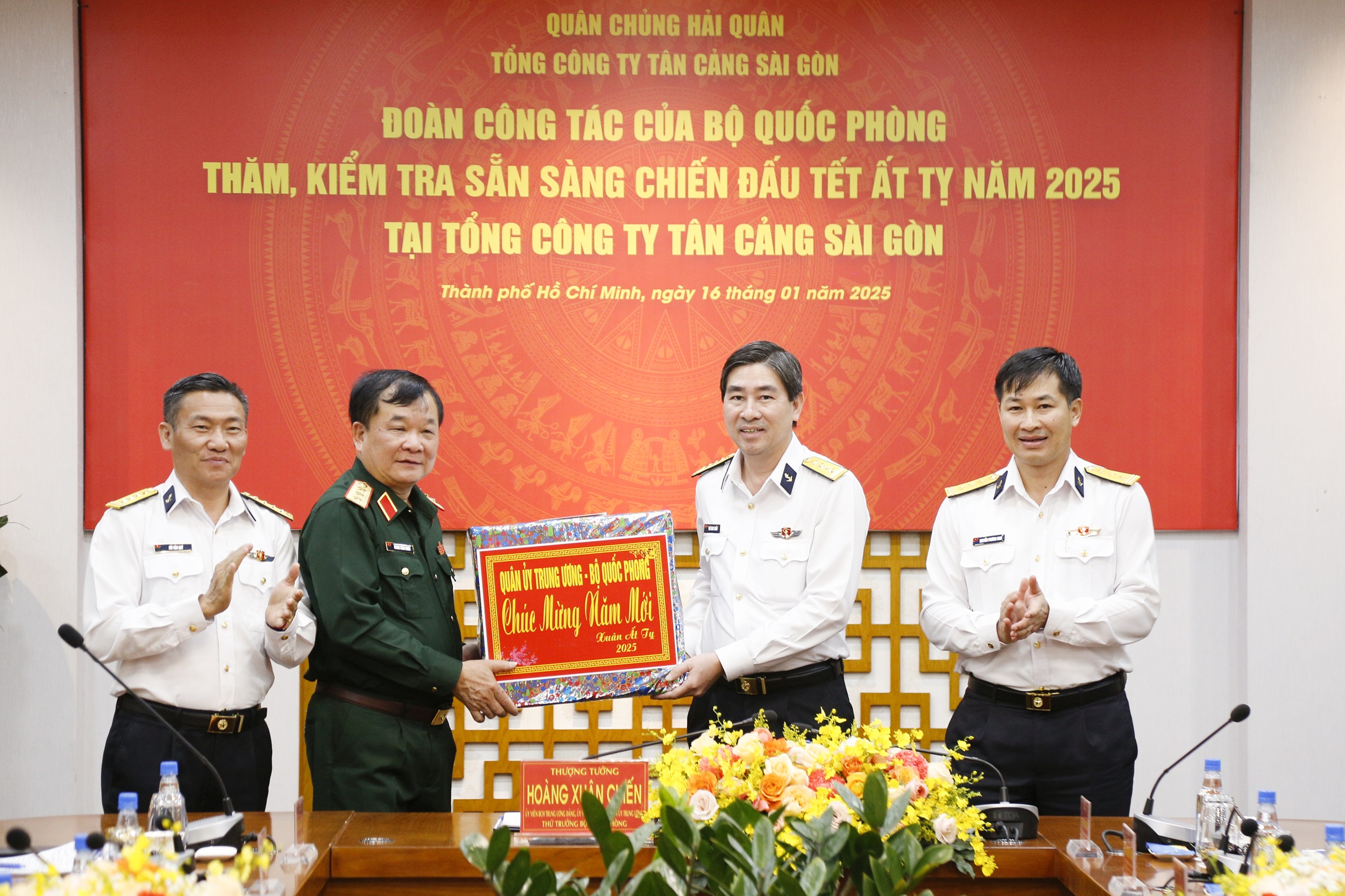 Chiều 16/1, tại TP. Hồ Chí Minh, đoàn công tác của Bộ Quốc phòng do Thượng tướng Hoàng Xuân Chiến, Ủy viên Trung ương Đảng, Ủy viên Thường vụ Quân ủy Trung ương, Thứ trưởng Bộ Quốc phòng làm trưởng đoàn đã đến thăm, kiểm tra công tác SSCĐ, sản xuất kinh doanh và chúc tết cán bộ, công nhân viên, người lao động Tổng công ty Tân cảng Sài Gòn.