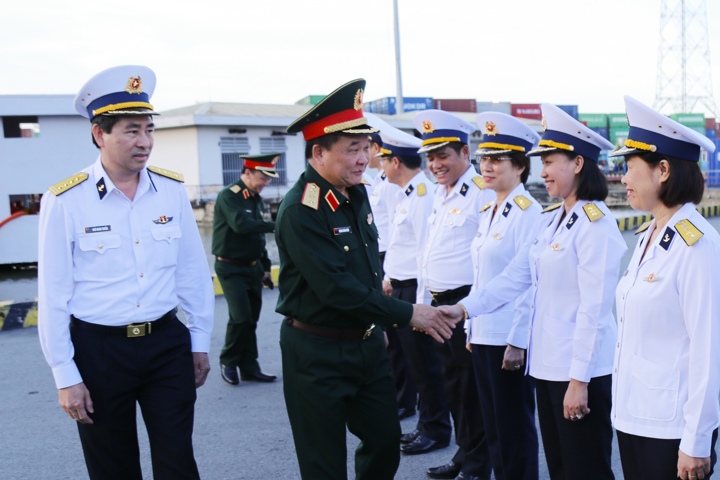 Cán bộ Tổng công ty Tân cảng Sài Gòn đón Thượng tướng Hoàng Xuân Chiến
