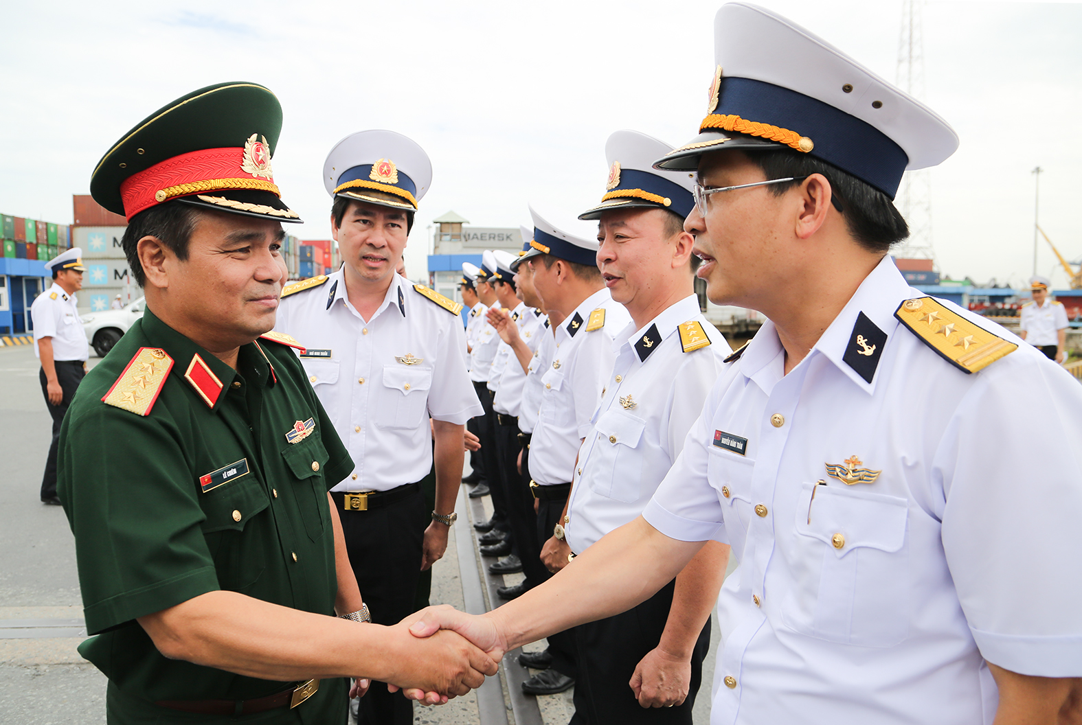 Đại diện lãnh đạo Tổng công ty đón Thượng tướng Lê Chiêm tại cảng Tân cảng Cát Lái