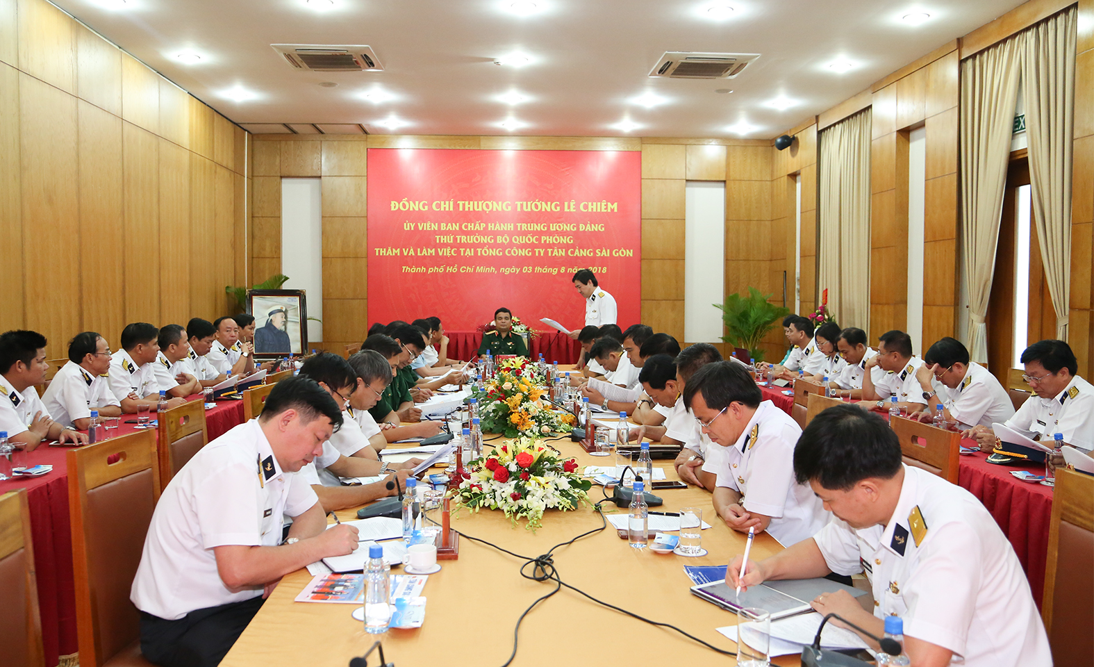 Sáng 3-8, tại TP. Hồ Chí Minh, Thượng tướng Lê Chiêm, Ủy viên Trung ương Đảng, Thứ trưởng Bộ Quốc phòng đã đến thăm và làm việc với Tổng công ty Tân cảng Sài Gòn (TCT TCSG). Cùng đi có Chuẩn Đô đốc Ngô Sỹ Quyết, Phó Tư lệnh Hải quân; đại diện các cơ quan chức năng Bộ Quốc phòng và Quân chủng Hải quân.
