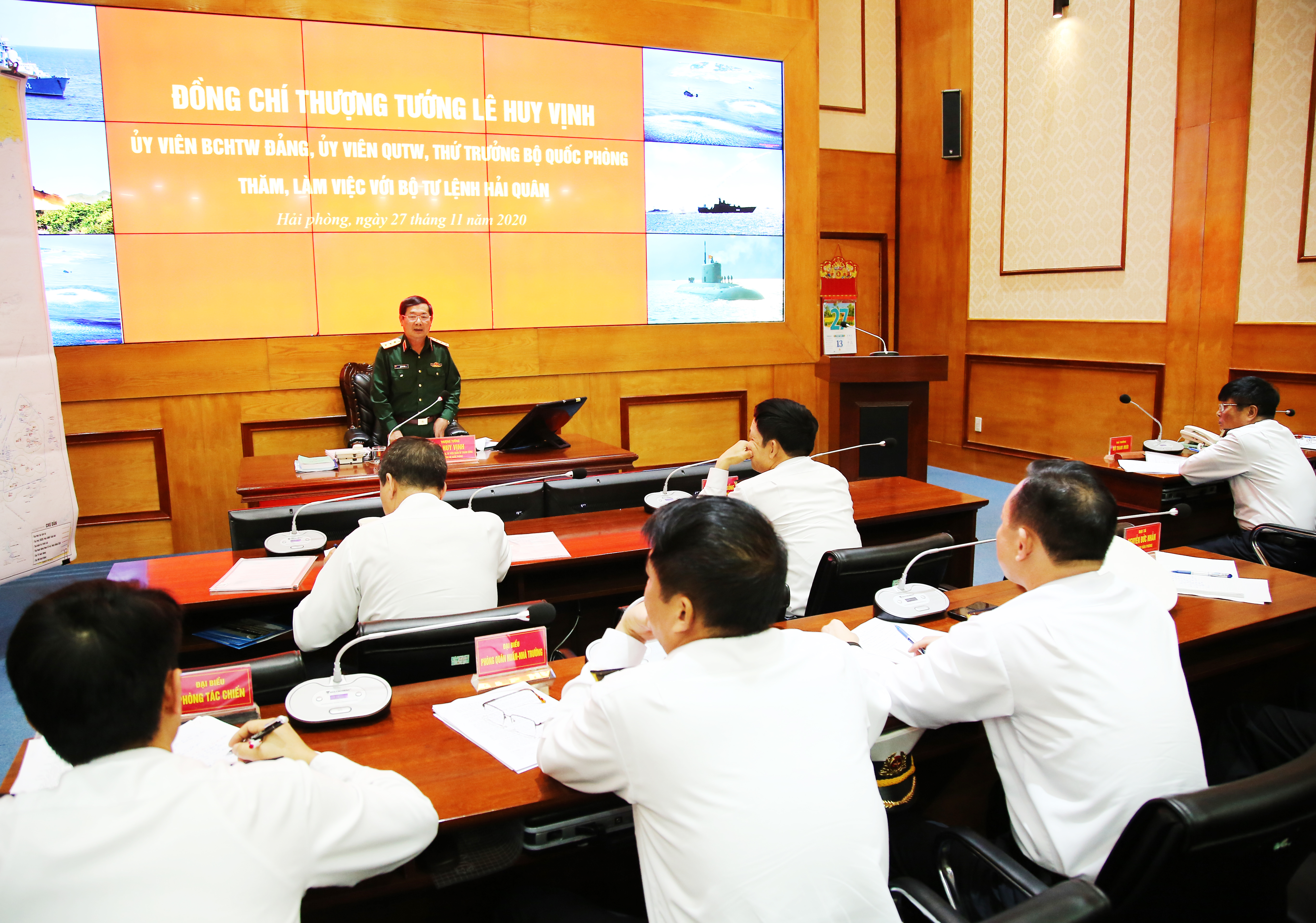 Ngày 27-11, tại Hải Phòng, đoàn công tác của Bộ Quốc phòng do Thượng tướng Lê Huy Vịnh, Ủy viên Trung ương Đảng, Ủy viên Quân ủy Trung ương, Thứ trưởng Bộ Quốc phòng làm trưởng đoàn đã đến thăm và làm việc với Bộ Tư lệnh Hải quân.