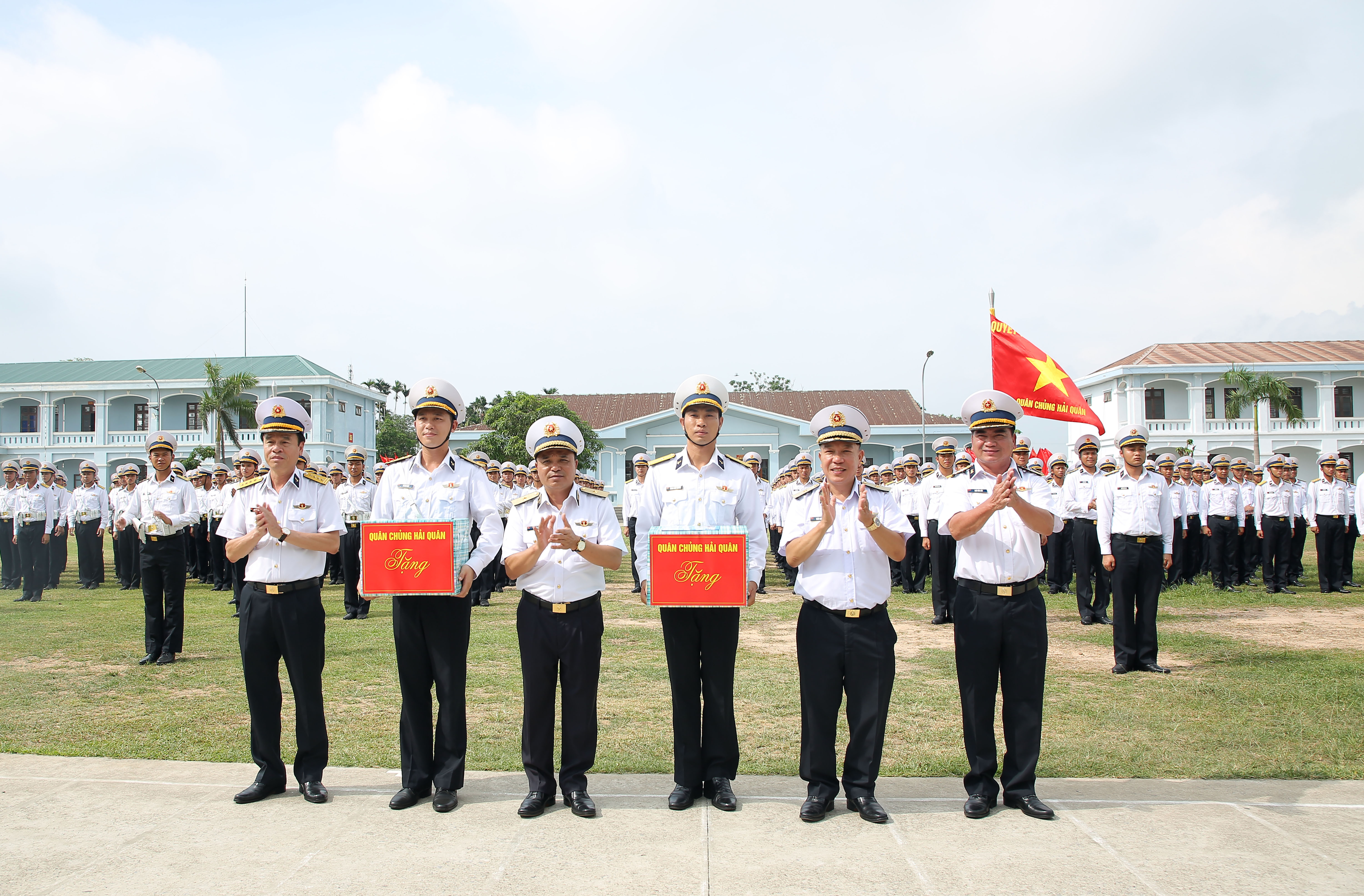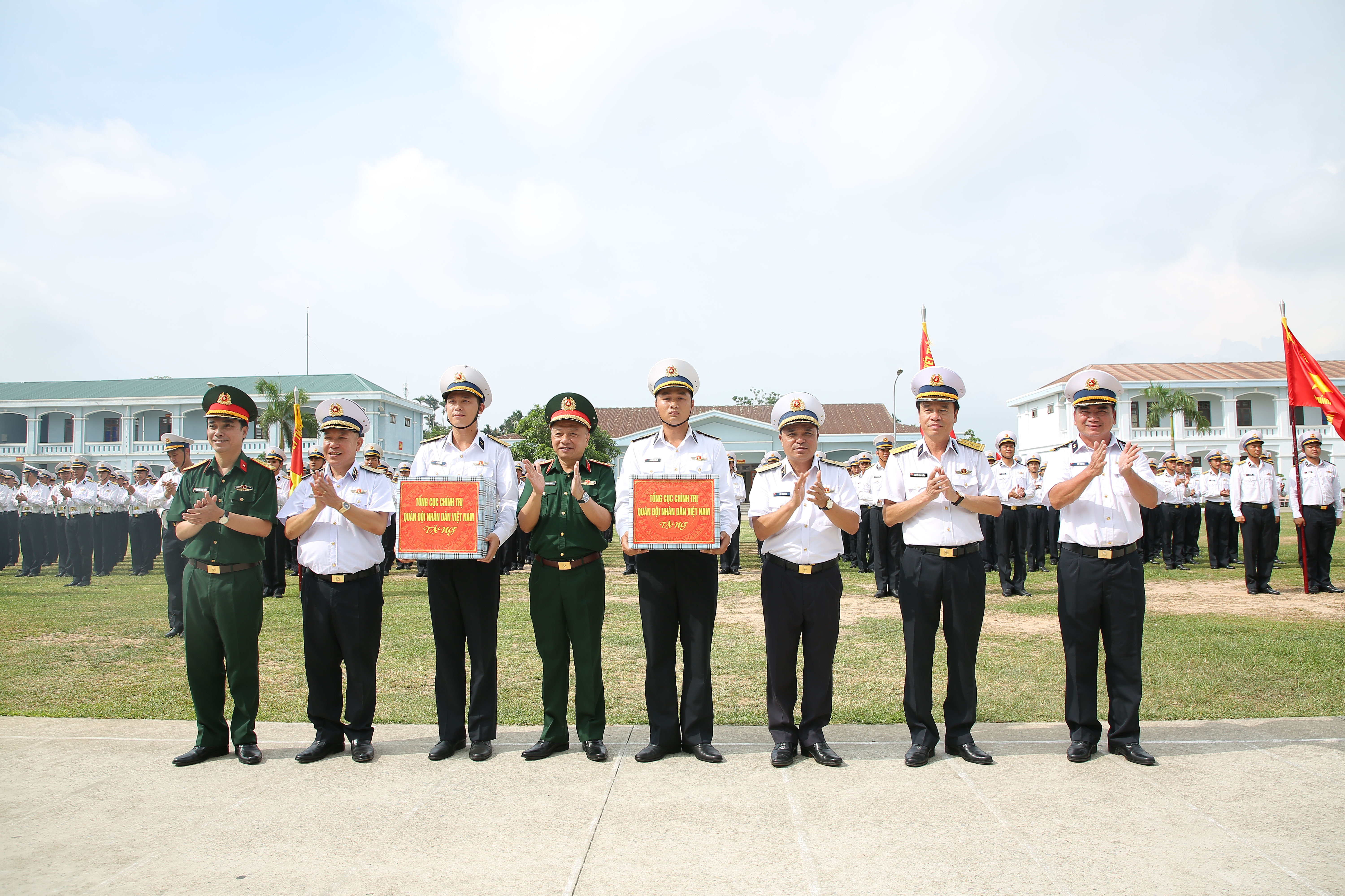 Đồng chí Phó Chính uỷ Hải quân tặng quà lực lượng tham gia diễu binh