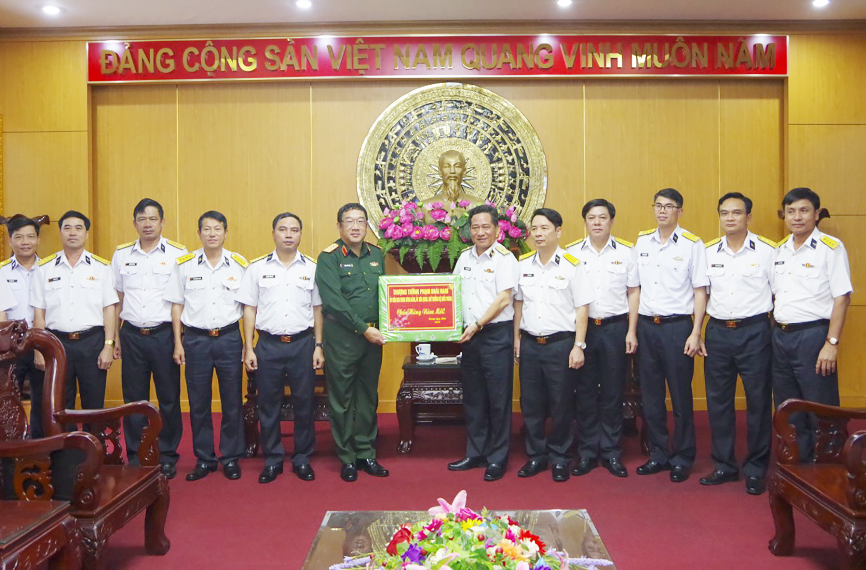 Nhân dịp chuẩn bị đón Tết nguyên đán Quý Mão 2023, thay mặt Quân ủy Trung ương, Bộ Quốc phòng, Thượng tướng Phạm Hoài Nam gửi lời chúc mừng năm mới đến toàn thể cán bộ, chiến sĩ, QNCN, CNVQP của Vùng và gia đình.