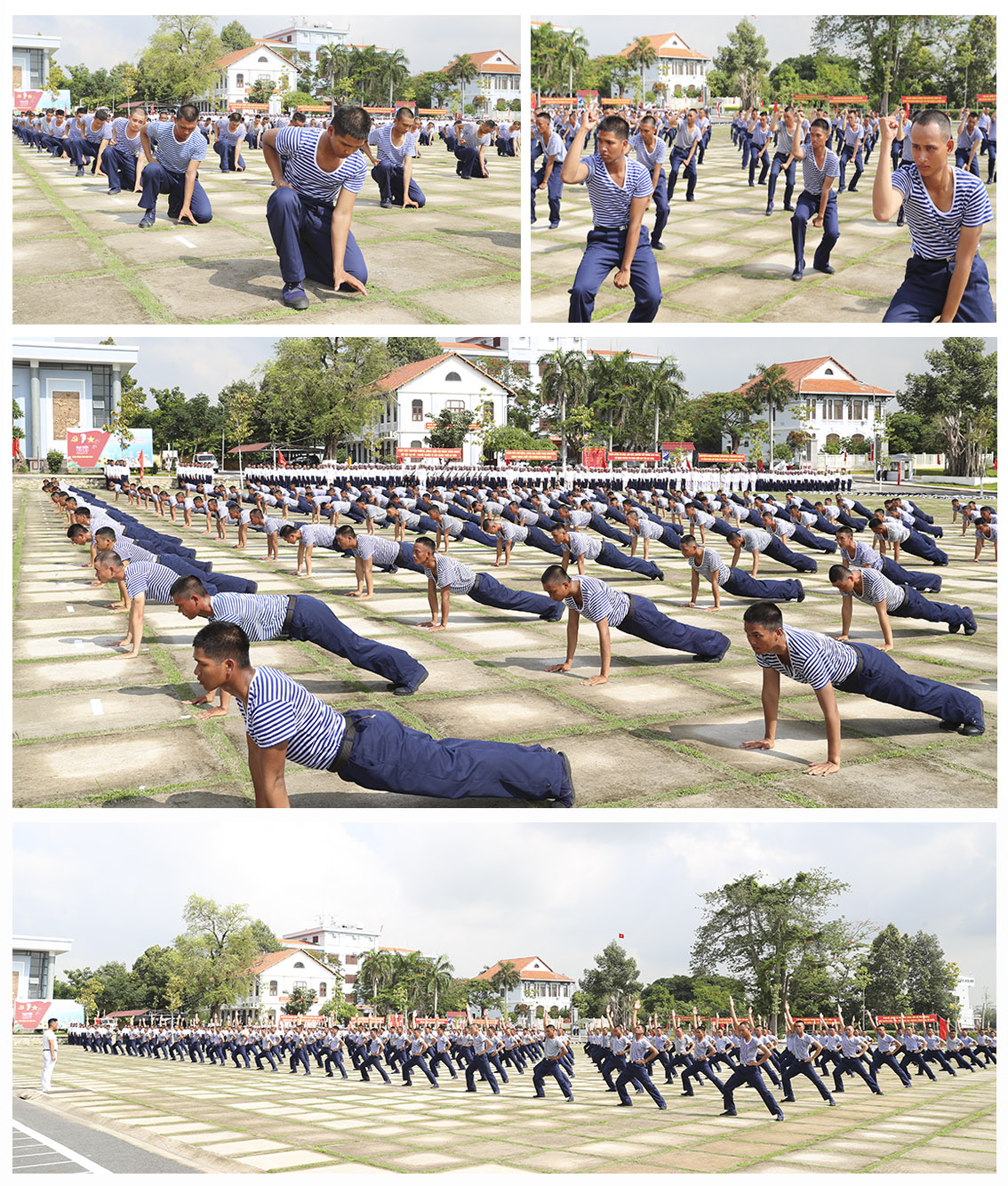 Chiến sĩ mới đồng diễn 4 bài thể dục và các bài võ tay không