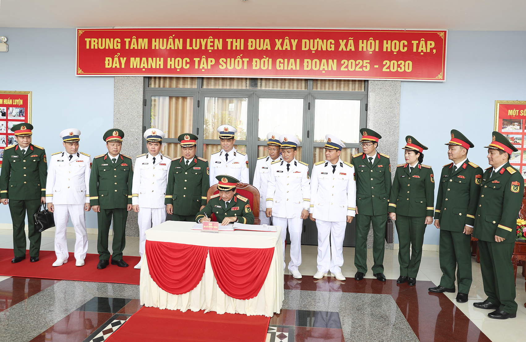 Thượng tướng Trịnh Văn Quyết ghi sổ lưu niệm của đơn vị
