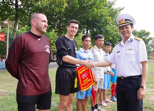 Thủy thủ tàu Hải quân Pháp và Hải quân Việt Nam giao hữu bóng đá