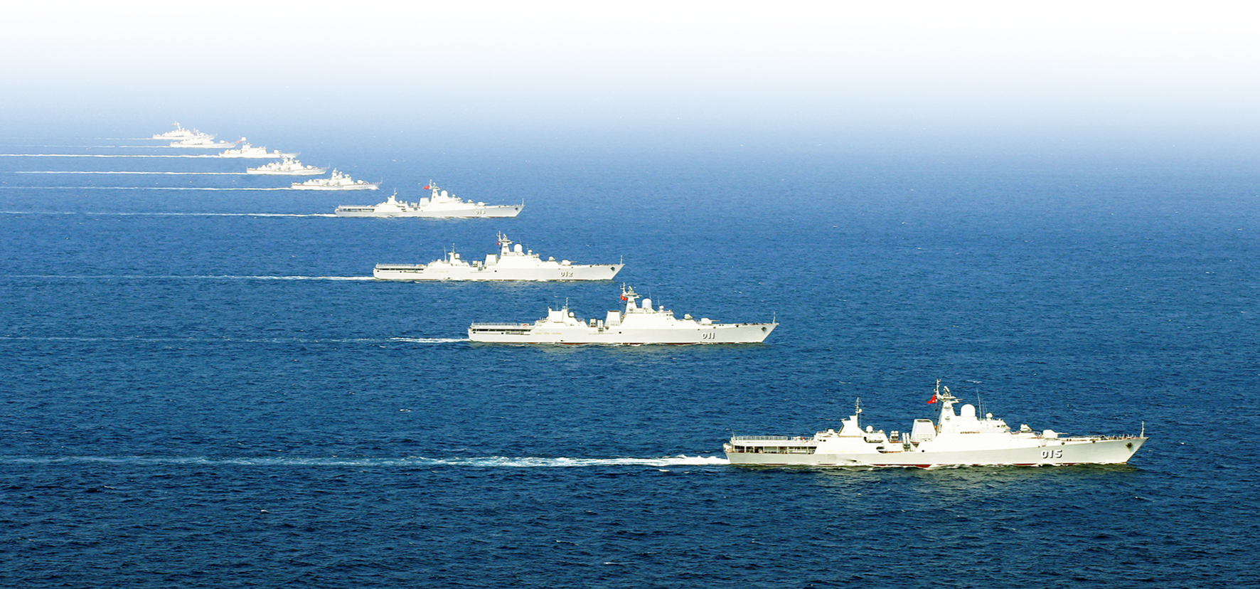 Tàu của Vùng 4 Hải quân diễu duyệt trên biển. Ảnh: Đức Thu