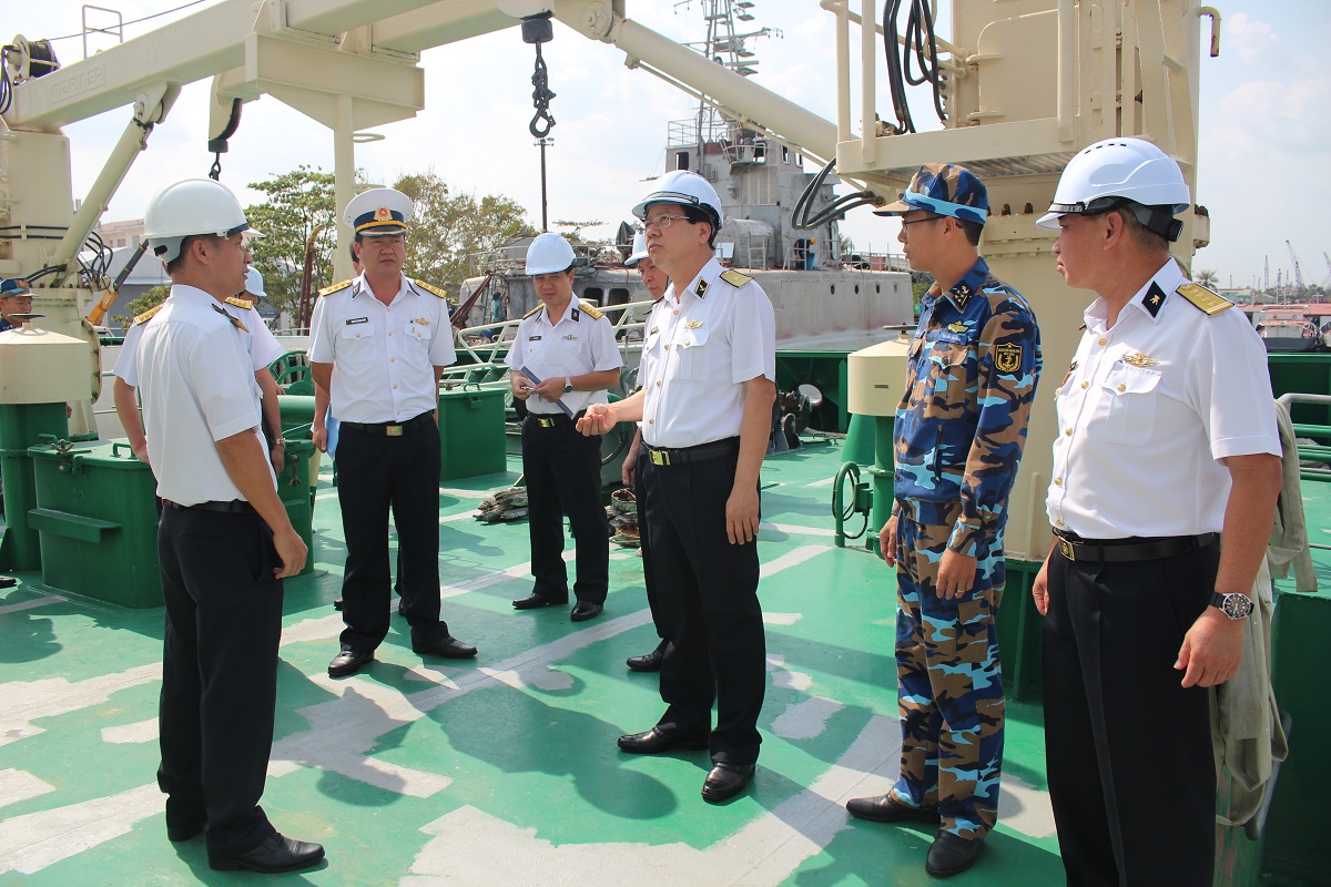 Chuẩn Đô đốc Hoàng Hồng Hà, Phó Tư lệnh Hải quân kiểm tra Nhà máy X55. Ảnh: Thanh Bình