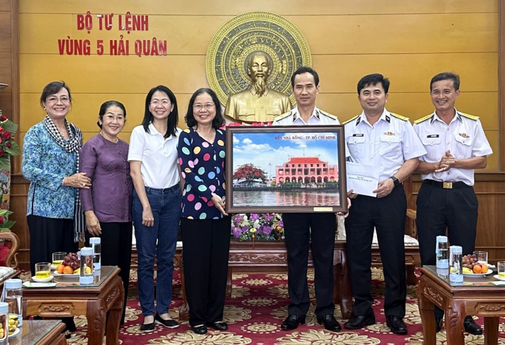Ngày 21/12, tại TP. Phú Quốc, tỉnh Kiên Giang, đoàn công tác của Tiểu Ban công tác cán bộ phụ nữ TP. Hồ Chí Minh do đồng chí Thái Thị Bích Liên, Thành ủy viên, Phó Trưởng ban Tổ chức Thành ủy làm trưởng đoàn đã đến thăm Bộ Tư lệnh Vùng 5 Hải quân.