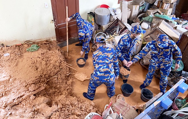 Cán bộ, chiến sĩ cùng các đoàn viên, thanh niên của xã đã củng cố, dọn dẹp nhà cửa, vệ sinh, sửa chữa đồ dùng sinh hoạt bị hư hại, di chuyển tài sản, vật nuôi đến vị trí an toàn… giúp nhân dân nhanh chóng ổn định cuộc sống.