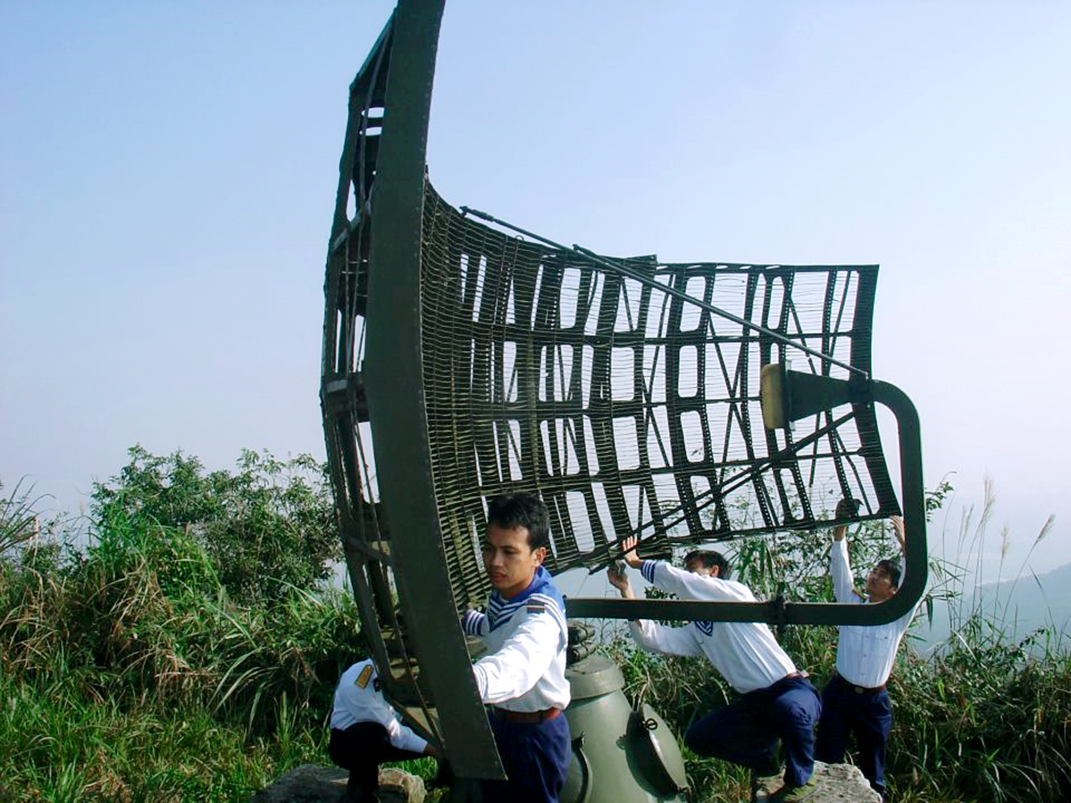 Các bộ, chiến sĩ Trạm 485 bảo quản, bảo dưỡng cánh sóng ra đa. ảnh: CTV