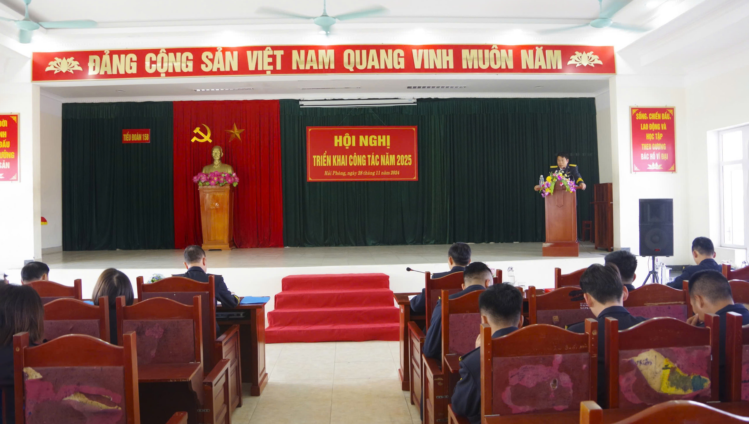 Chiều 28/11, tại huyện Thủy Nguyên, TP. Hải Phòng, Tiểu đoàn 158, Vùng 1 Hải quân tổ chức Hội nghị triển khai công tác năm 2025. Đại tá Vũ Hữu Kiêm, Phó Chính ủy Vùng dự và chỉ đạo.