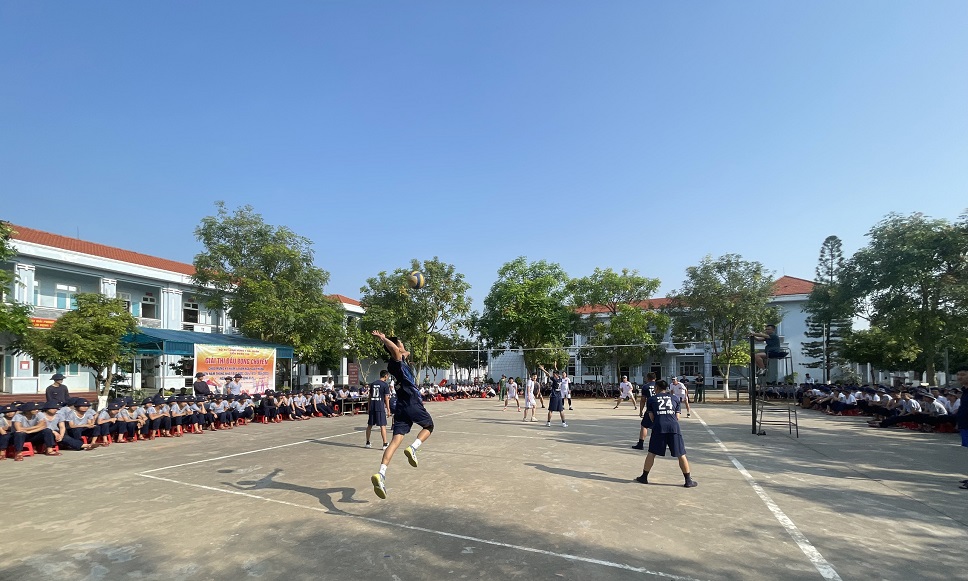 Trận đấu bóng chuyền được đông đảo cán bộ, chiến sĩ hưởng ứng và cổ vũ