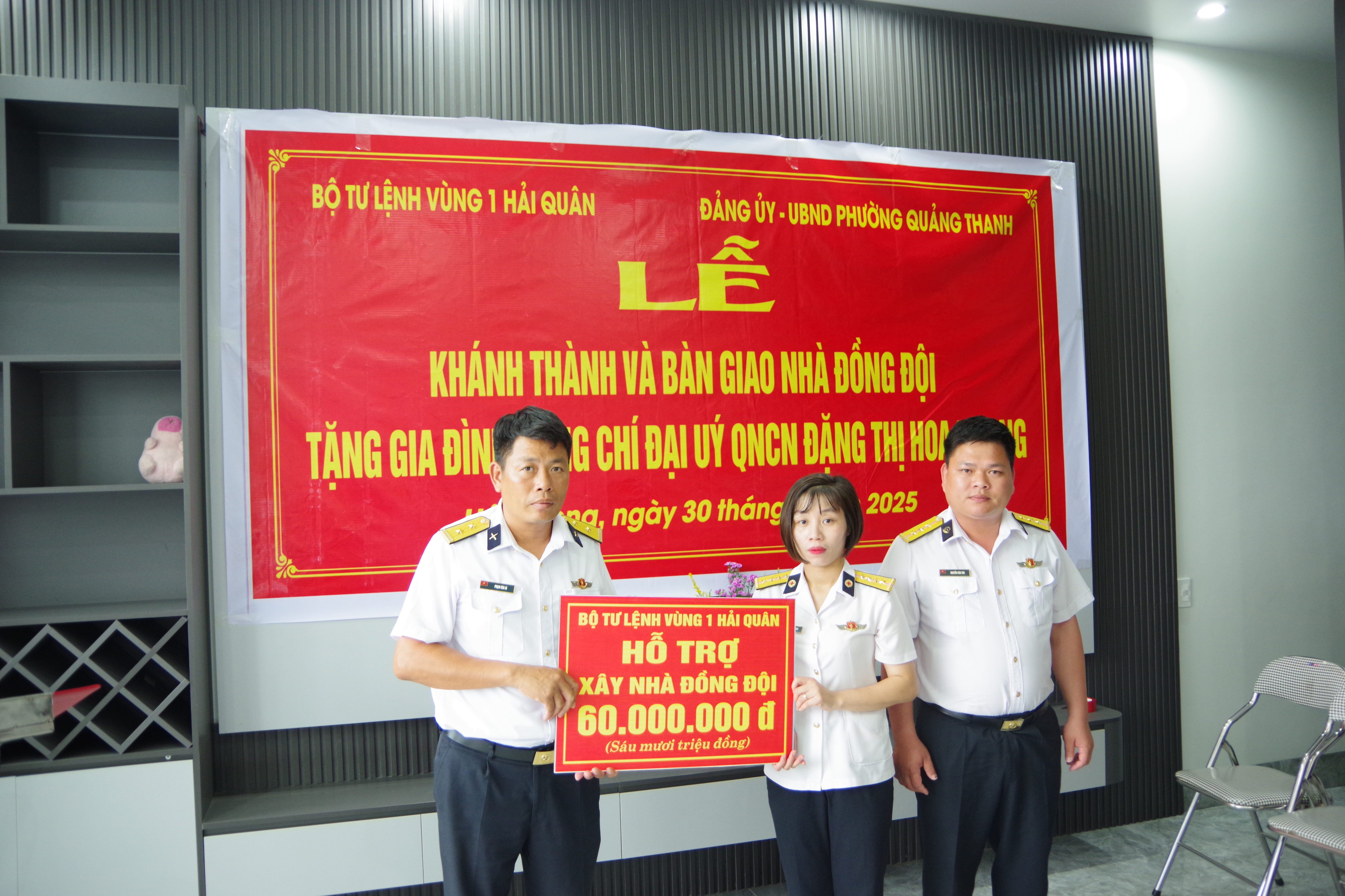 Ngày 30/5, Tiểu đoàn 158 (Vùng 1 Hải quân) phối hợp với cấp ủy, chính quyền địa phương phường Quảng Thanh, thành phố Thuỷ Nguyên (TP. Hải Phòng) tổ chức lễ khánh thành và bàn giao nhà đồng đội tặng gia đình Đại úy QNCN Đặng Thị Hoa Nhung, Nhân viên Quân y, Tiểu đoàn 158.