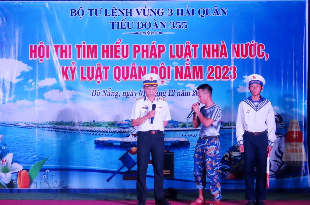 Tối 2/12, tại Đà Nẵng, Tiểu đoàn 355, Vùng 3 Hải quân đã phối hợp với các đơn vị kết nghĩa trên địa bàn tổ chức Hội thi tìm hiểu pháp luật Nhà nước, kỷ luật Quân đội năm 2023.