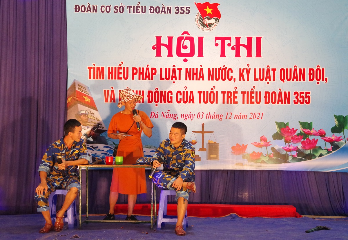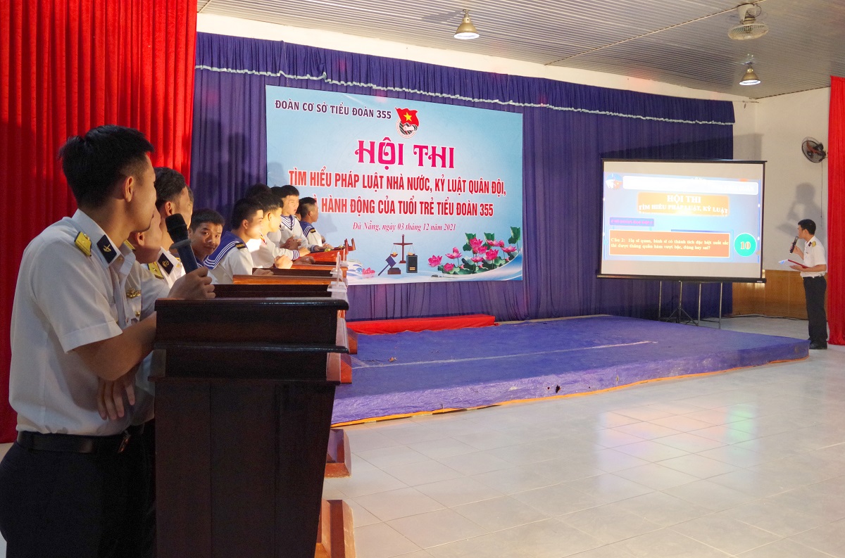 Tối 3/12, tại Đà Nẵng, Đoàn cơ sở Tiểu đoàn 355, Vùng 3 Hải quân tổ chức Hội thi tìm hiểu pháp luật Nhà nước, kỷ luật Quân đội với chủ đề “Nâng cao ý thức thượng tôn pháp luật, xây dựng đơn vị VMTD mẫu mực, tiêu biểu, hoàn thành xuất sắc mọi nhiệm vụ được giao”.