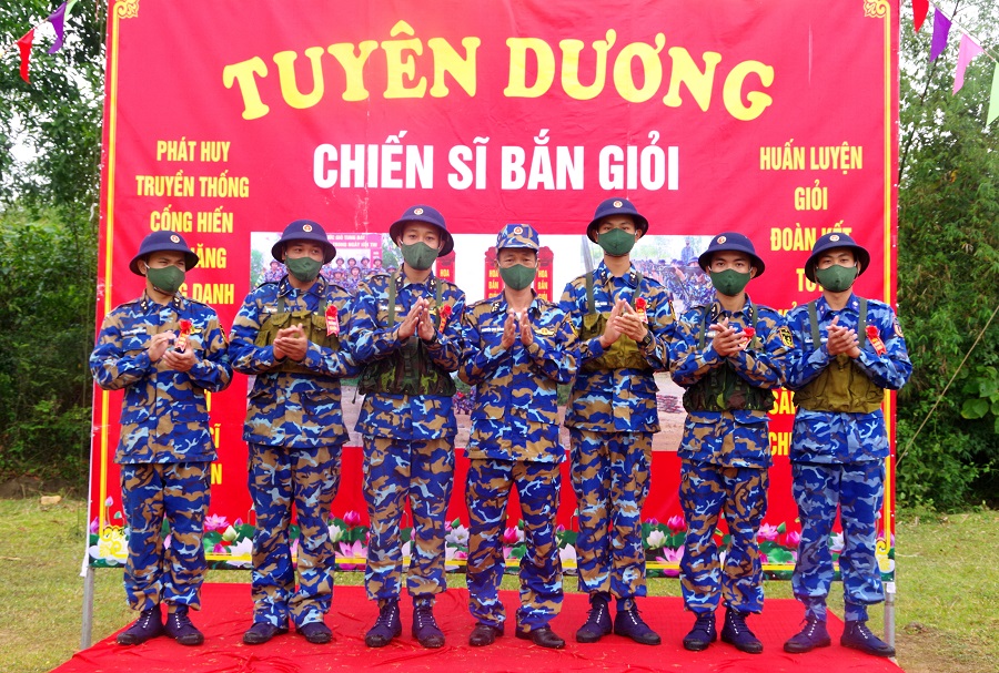 Chỉ huy đơn vị tặng hoa chiến sĩ bắn giỏi