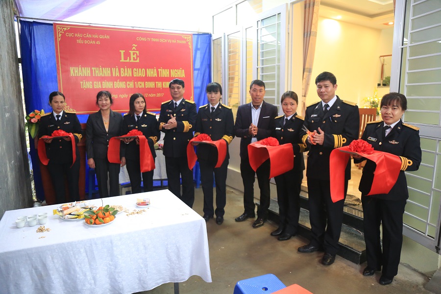 Ngày 13-12, tại Phường Đằng Hải, quận Hải An, thành phố Hải Phòng, Tiểu đoàn 45, Cục Hậu cần Hải quân phối hợp với Công ty TNHH Dịch vụ Hà Thanh và chính quyền địa phương tổ chức khánh thành và bàn giao nhà tình nghĩa cho Thiếu úy QNCN Đinh Thị Kim Xoa, Nhân viên nấu Tiểu đoàn 45.