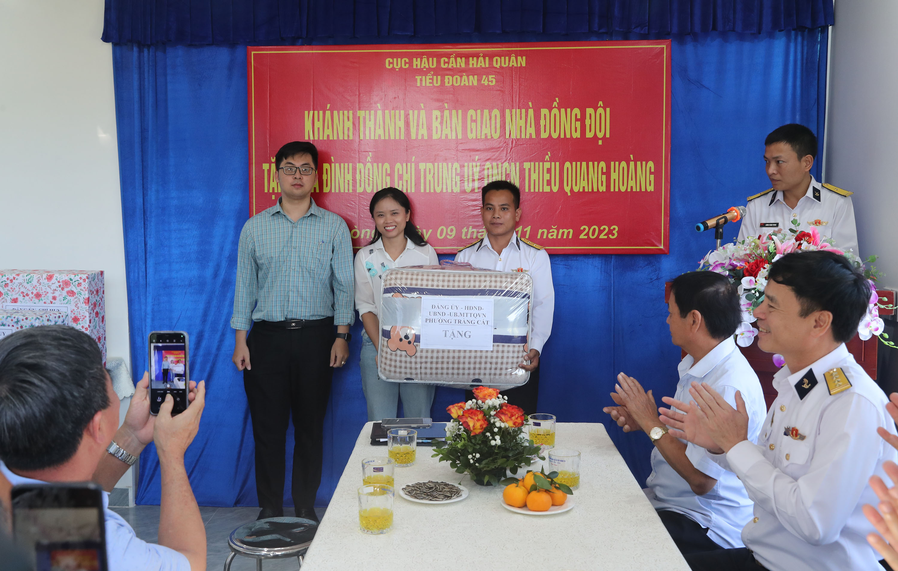 Sáng 9/11, tại phường Tràng Cát, quận Hải An, TP. Hải Phòng, Tiểu đoàn 45, Cục Hậu cần Hải quân phối hợp với chính quyền địa phương tổ chức khánh thành và bàn giao nhà đồng đội tặng gia đình Trung úy QNCN Thiều Quang Hoàng, Lái xe Đại đội 3, Tiểu đoàn 45.