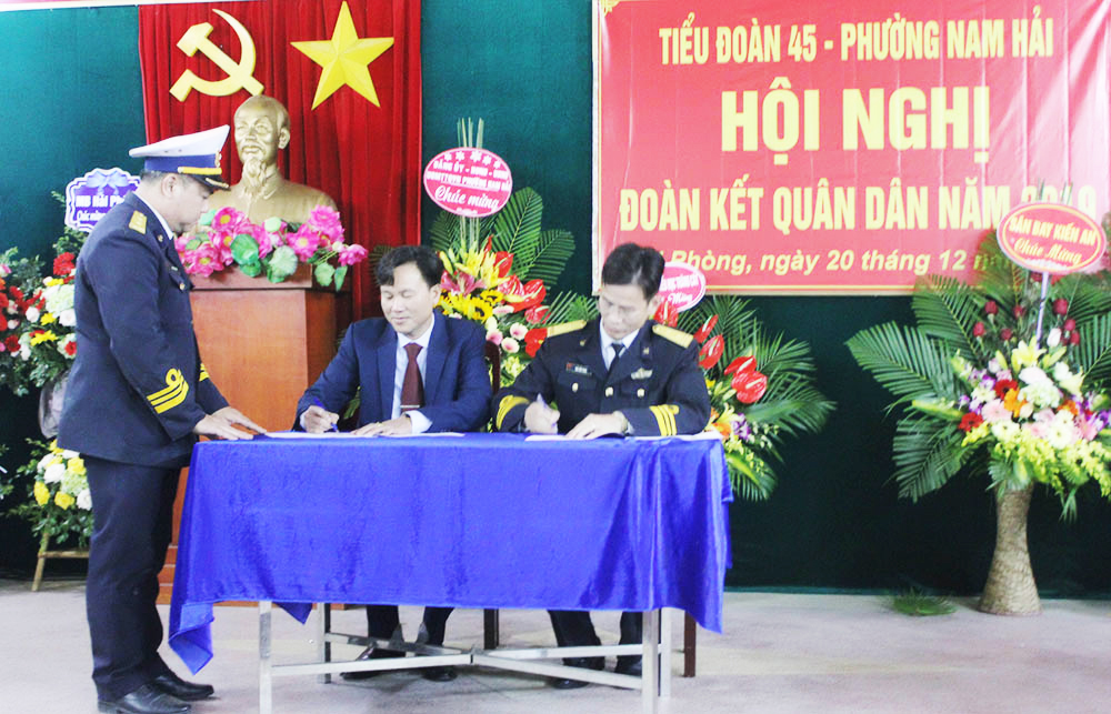 Đại diện Tiểu đoàn 45 và phường Nam Hải ký kết chương trình phối hợp năm 2020