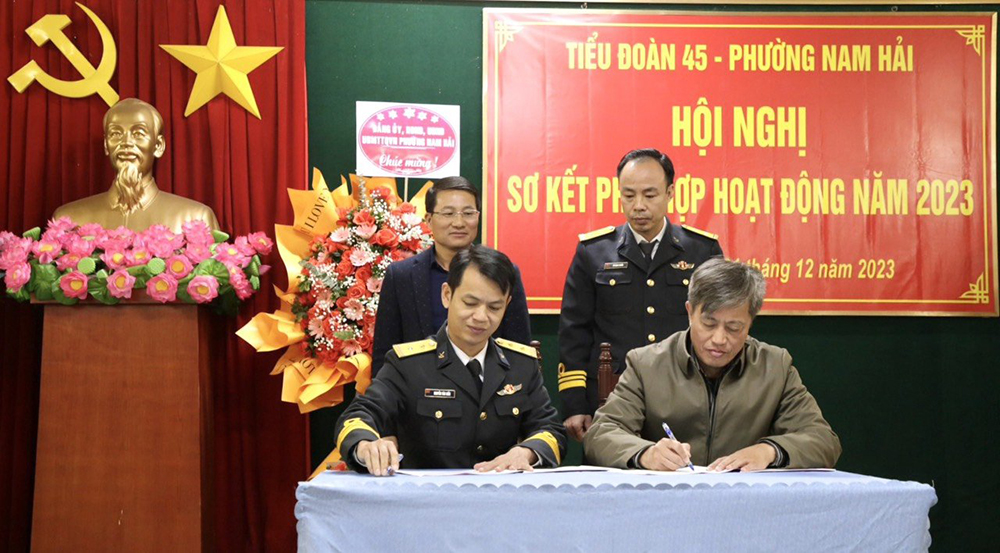 Dịp này Tiểu đoàn 45 và phường Nam Hải đã xác định 3 nội dung, biện pháp trọng tâm để nâng cao chất lượng, hiệu quả công tác phối hợp trong thời gian tới.