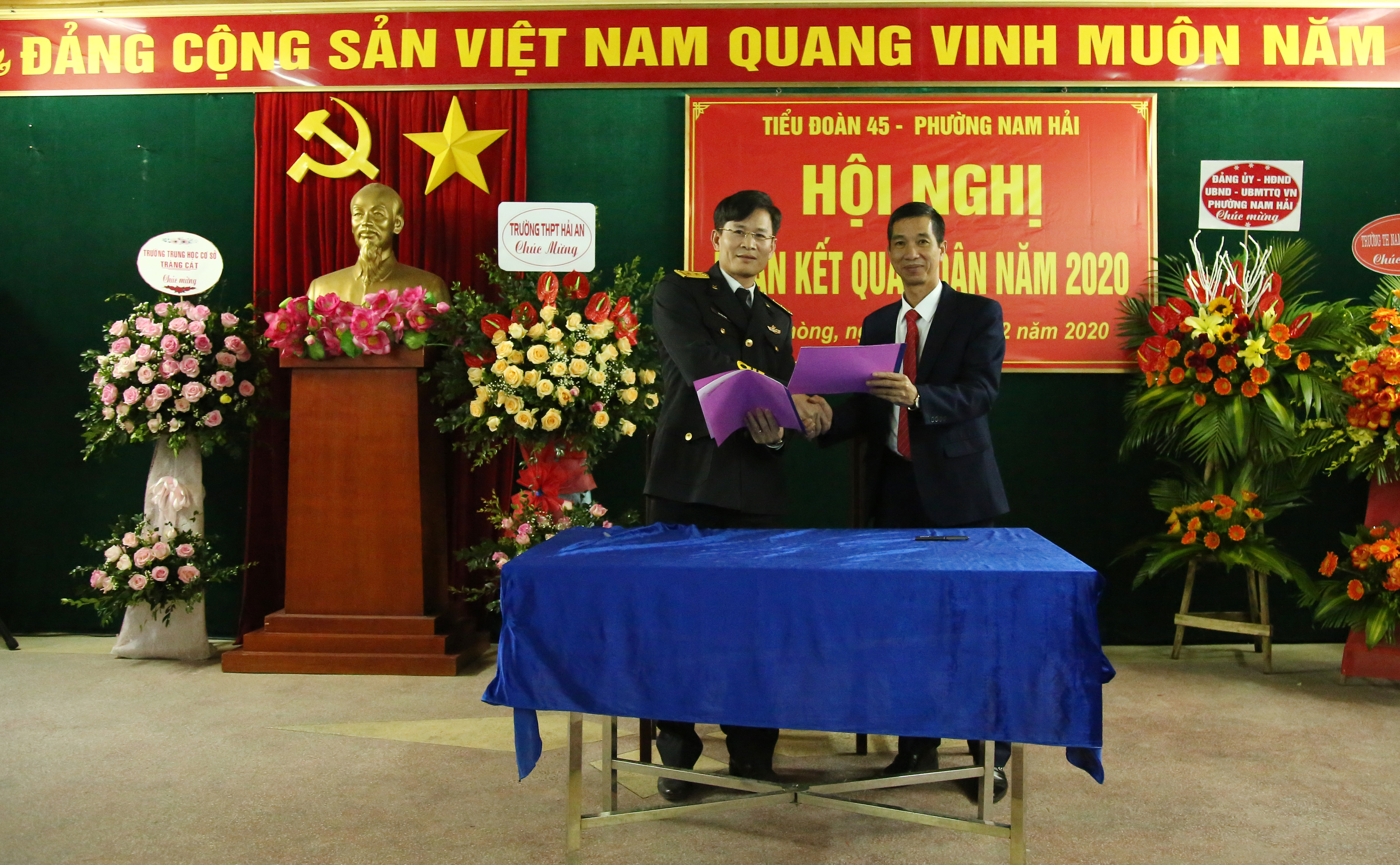 Năm 2020, Tiểu đoàn 45 và phường Nam Hải thường xuyên phối hợp chặt chẽ, tổ chức thực hiện tốt các nội dung, chương trình đề ra; đẩy mạnh thực hiện Cuộc vận động “Toàn dân đoàn kết xây dựng đời sống văn hóa khu dân cư”, Cuộc vận động “Cả nước chung tay xây dựng nông thôn mới” và phong trào thi đua “Quân đội chung tay vì người nghèo-Không để ai bị bỏ lại phía sau”.