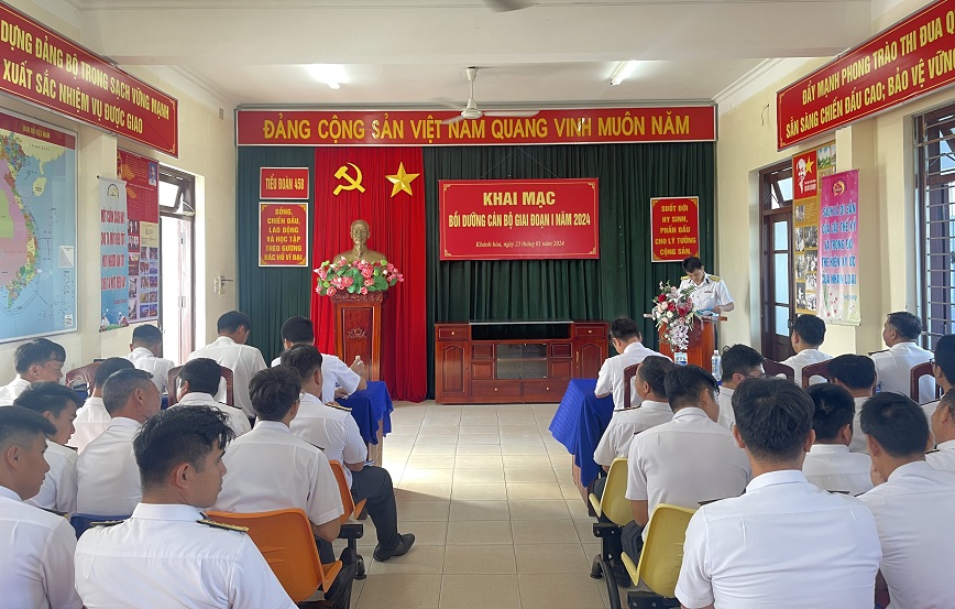 Sáng 23/1, tại TP. Cam Ranh, tỉnh Khánh Hòa, Tiểu đoàn 458, Vùng 4 Hải quân tổ chức khai mạc lớp bồi dưỡng cán bộ giai đoạn 1 năm 2024. Tham gia lớp bồi dưỡng các đồng chí là cán bộ huấn luyện, trợ lý, nhân viên chuyên môn đầu ngành và tiểu đội trưởng.