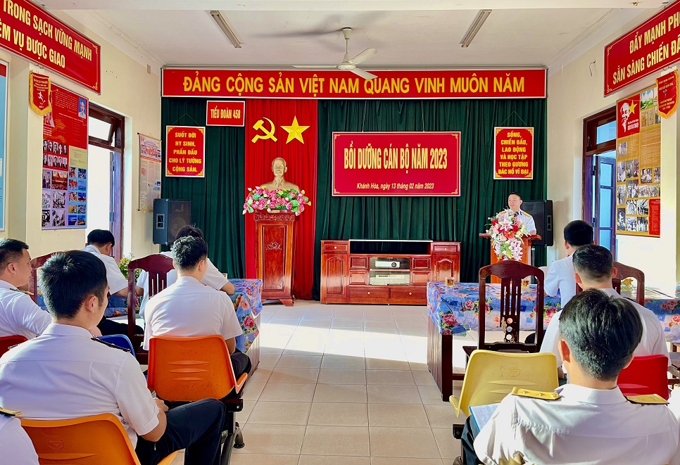 Sáng 13/2, tại TP. Cam Ranh, tỉnh Khánh Hòa, Tiểu đoàn 458, Vùng 4 Hải quân tổ chức khai mạc Hội nghị bồi dưỡng cán bộ năm 2023. Tham gia lớp bồi dưỡng có các đồng chí là cán bộ huấn luyện, trợ lý, nhân viên chuyên môn đầu ngành và tiểu đội trưởng.