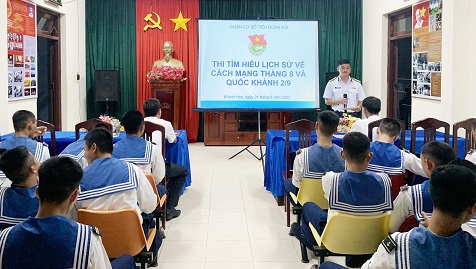 Tối 1/9, tại TP. Cam Ranh, tỉnh khánh Hòa, Đoàn cơ sở Tiểu đoàn 458, Vùng 4 Hải quân tổ chức thi tìm hiểu Cách mạng tháng Tám và Quốc khánh 2/9.