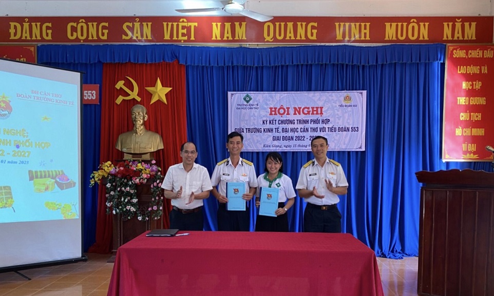 Chiều 15/1, tại TP. Phú Quốc, tỉnh Kiên Giang, Tiểu đoàn 553, Vùng 5 Hải quân và Đoàn trường Kinh tế, Đại học Cần Thơ tổ chức Hội nghị ký kết chương trình phối hợp hoạt động giai đoạn 2022-2027.