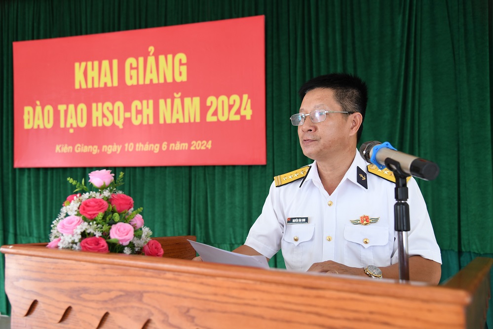 Chiều 10/6, tại TP. Phú Quốc, tỉnh Kiên Giang, Tiểu đoàn 563, Bộ Tư lệnh Vùng 5 Hải quân tổ chức Lễ khai giảng đào tạo hạ sĩ quan, chỉ huy, nghiệp vụ chiến sĩ vệ binh năm 2024. Đại tá Nguyễn Văn Sinh, Phó Tham mưu trưởng Vùng dự và chỉ đạo.