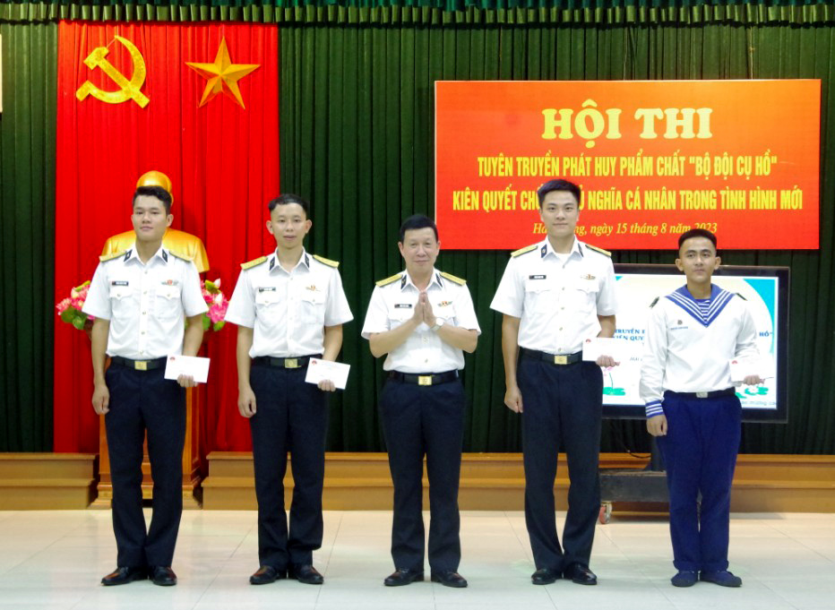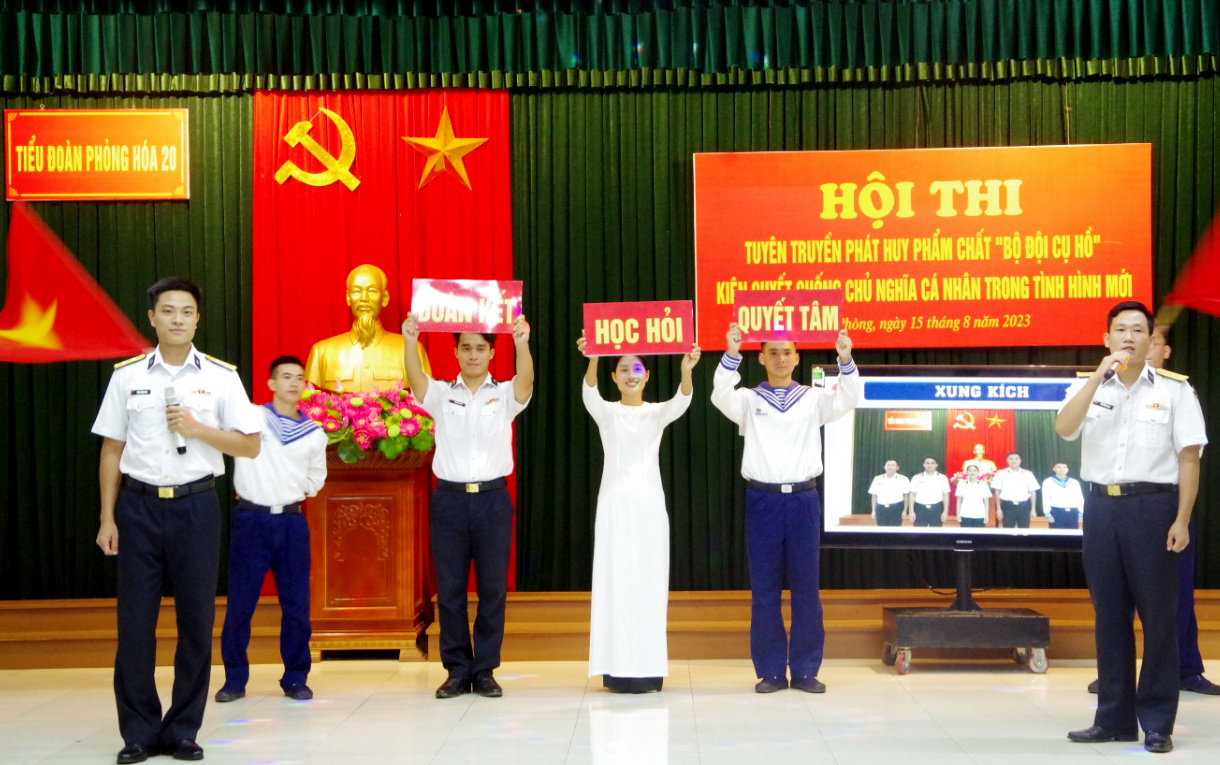 Trong phần thi tuyên truyền, mỗi đội cử 1 đồng chí có khả năng tuyên truyền tốt và lựa chọn chủ đề mang ý nghĩa giáo dục sâu sắc về việc phát huy phẩm chất “Bộ đội Cụ Hồ - Người chiến sĩ Hải quân” trong đơn vị mình để giới thiệu, có video clip, dàn dựng hoạt cảnh hoặc trình chiếu Powerpoint minh hoạ.