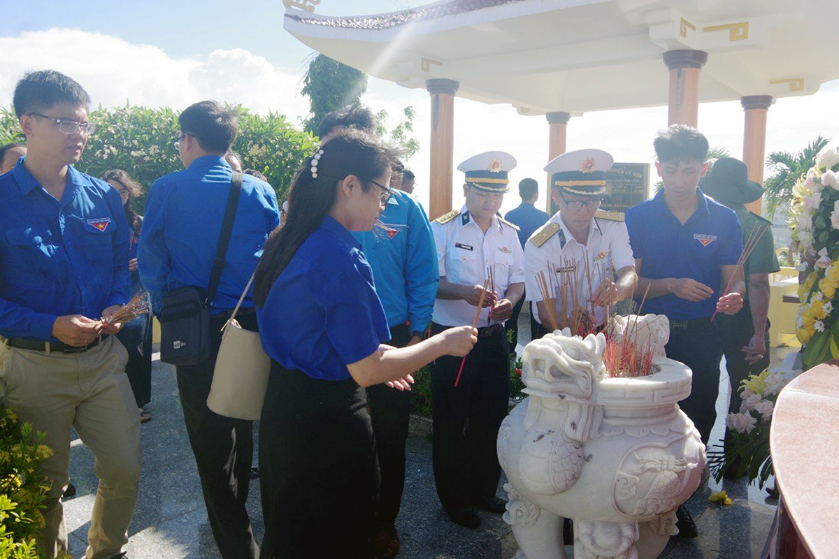 Đoàn công tác dâng hương tại tượng đài Đội Hoàng Sa kiêm quản Bắc Hải trên đảo Lý Sơn.