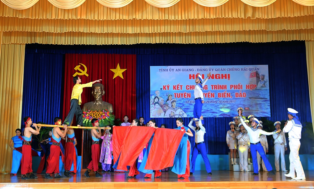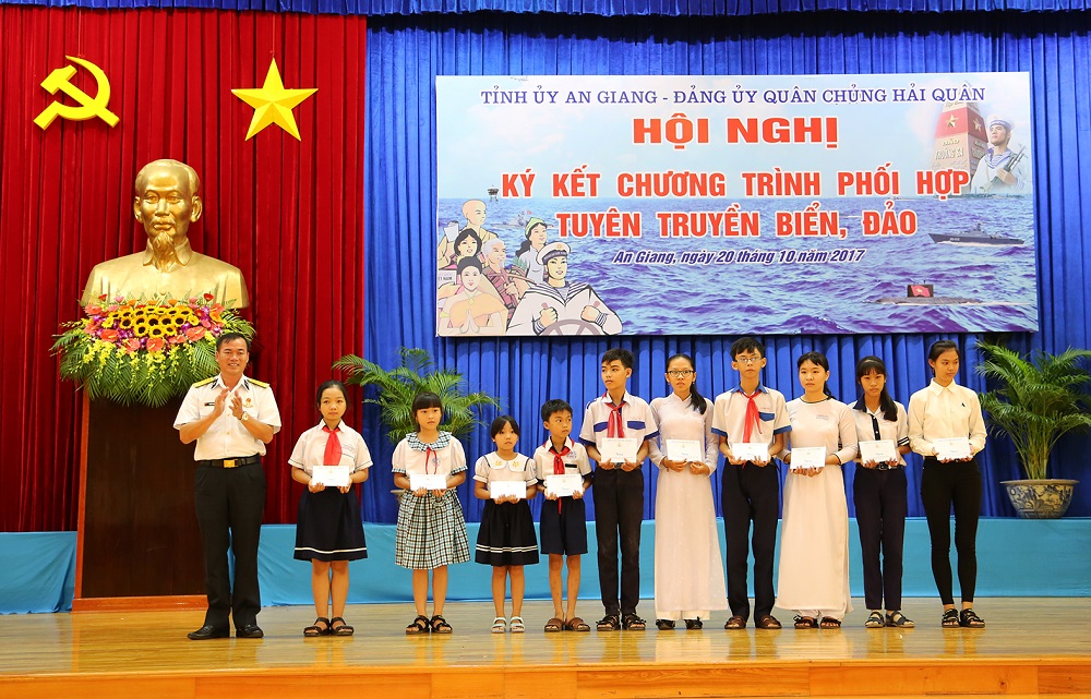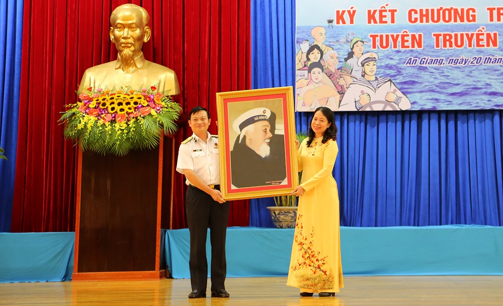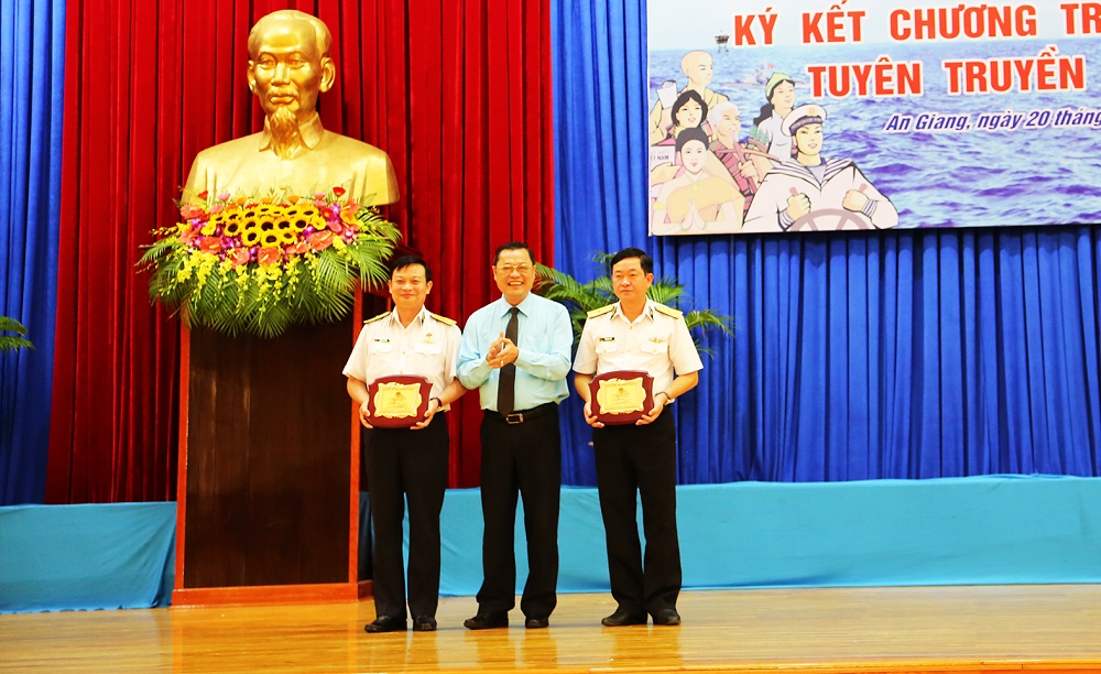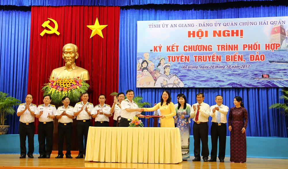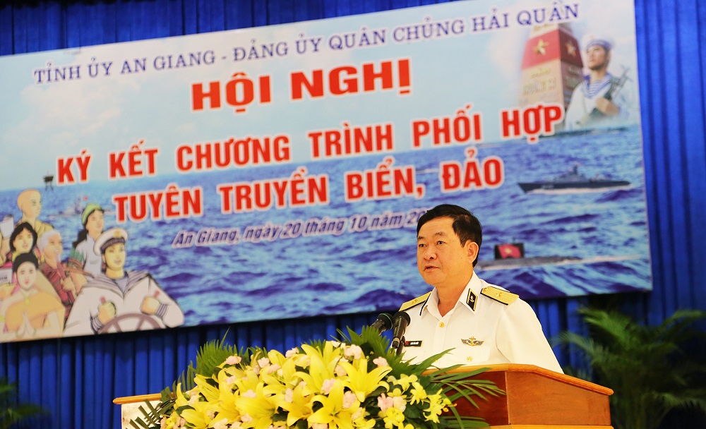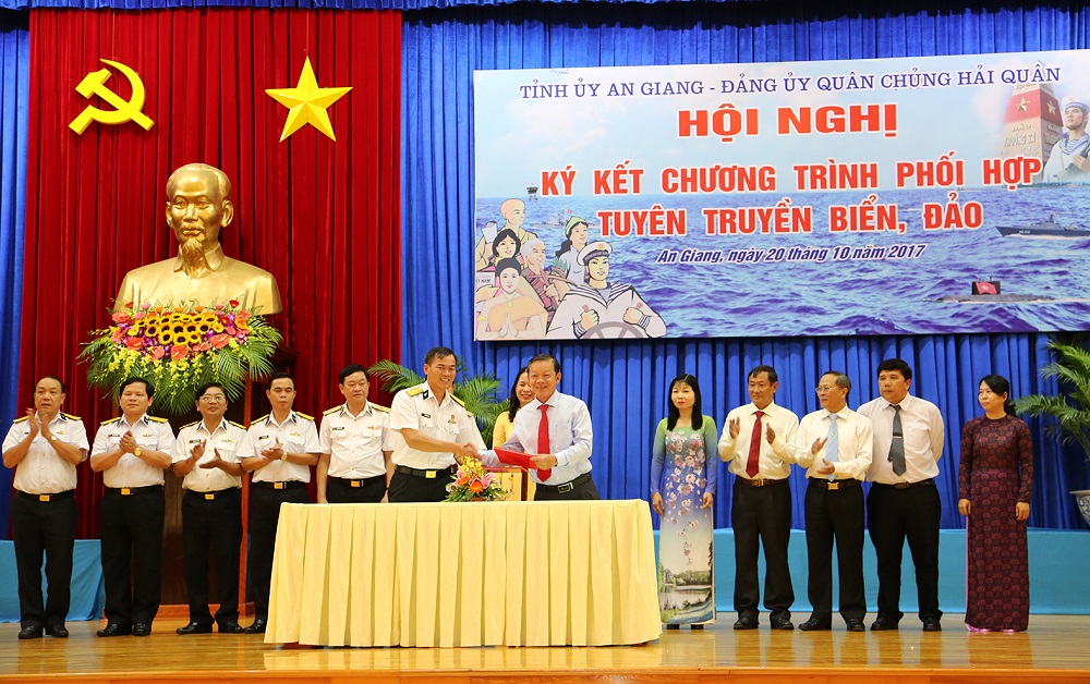 Chuẩn Đô đốc Đoàn Văn Chiều, Phó Chủ nhiệm Chính trị Hải quân thông qua Chương trình phối hợp TTBĐ giữa Tỉnh ủy An Giang và Đảng ủy Quân chủng Hải quân gồm 10 nhóm nội dung. Theo đó, hai bên phối hợp thực hiện công tác tuyên truyền miệng; tuyên truyền trên các phương tiện thông tin đại chúng; tổ chức các hoạt động dân vận, đền ơn đáp nghĩa trên địa bàn tỉnh An Giang; tổ chức hoạt động kết nghĩa giữa các đơn vị Hải quân với các địa phương, tổ chức thuộc tỉnh An Giang; thực hiện công tác giáo dục quốc phòng, tuyên truyền thu hút nguồn nhân lực xây dựng Quân chủng trong thời kỳ mới; tổ chức các đoàn đi thăm quân dân huyện đảo Trường Sa và Nhà giàn DK1 trên thềm lục địa phía Nam; hoạt động giao lưu văn hóa, văn nghệ; tổ chức trưng bày triển lãm; thăm chiến trường xưa; khuyến khích các văn nghệ sĩ tham gia sáng tác về đề tài biển, đảo, người chiến sĩ Hải quân.