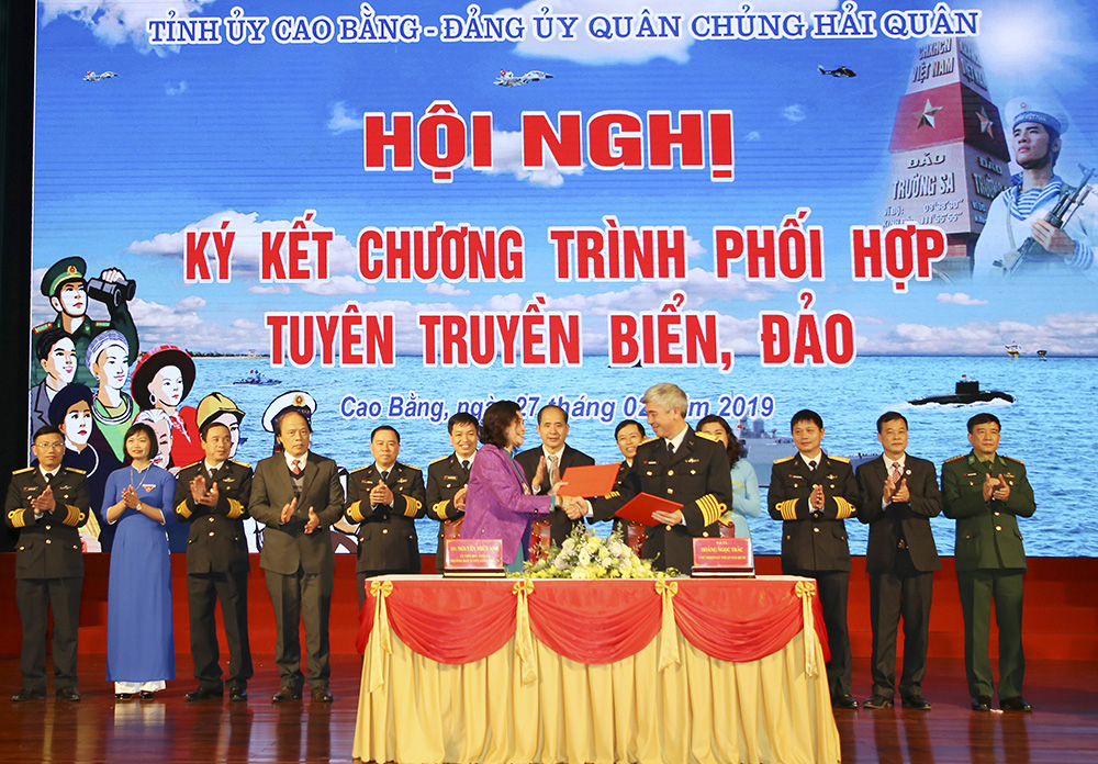 Việc ký kết Chương trình phối hợp tuyên truyền biển, đảo giữa Tỉnh ủy Cao Bằng và Đảng ủy Quân chủng Hải quân nhằm quán triệt sâu sắc và tiếp tục triển khai thực hiện có hiệu quả "Chiến lược biển Việt Nam đến năm 2020"; “Chiến lược phát triển bền vững kinh tế biển Việt Nam đến năm 2030, tầm nhìn đến năm 2045”; Nghị quyết Hội nghị Trung ương 8, Khóa XI về "Chiến lược bảo vệ Tổ quốc trong tình hình mới"; tăng cường trao đổi, cung cấp thông tin hai chiều về biển, đảo, biên giới đất liền Việt Nam và phối hợp tổ chức các hoạt động thực tiễn giữa tỉnh Cao Bằng với Quân chủng Hải quân.