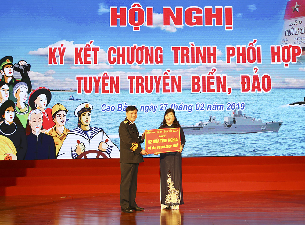Nhân chuyến công tác tại tỉnh Cao bằng, Đảng ủy, Bộ Tư lệnh Hải quân tặng 2 nhà tình nghĩa, mỗi nhà trị giá 70 triệu đồng cho tỉnh; tặng 10 gia đình chính sách tiêu biểu của tỉnh 10 phần quà, mỗi phần quà trị giá 10 triệu đồng.
