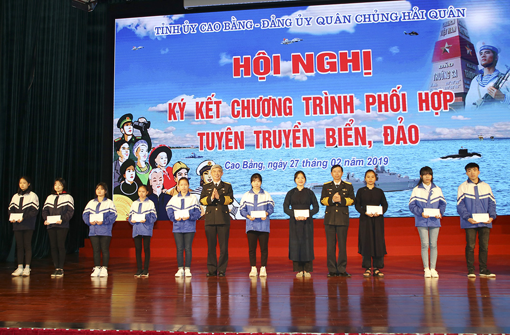 Cao Bằng là địa phương thứ 59 trong cả nước và 15 cơ quan Trung ương đã ký kết Chương trình phối hợp tuyên truyền biển, đảo với Quân chủng Hải quân.