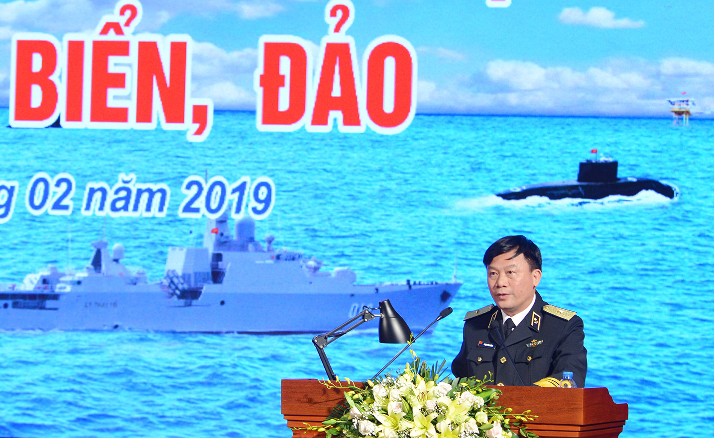 Chuẩn Đô đốc Phạm Văn Vững phát biểu tại hội nghị