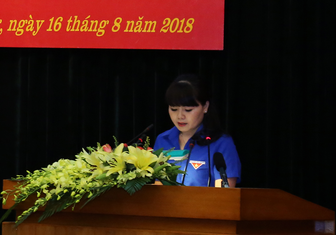 Đồng chí Nguyễn Thị Thanh Huyền, Ủy viên BCHTW Đoàn, Ủy viên BCH Đảng bộ tỉnh-Bí thư Tỉnh đoàn Tuyên Quang phát biểu