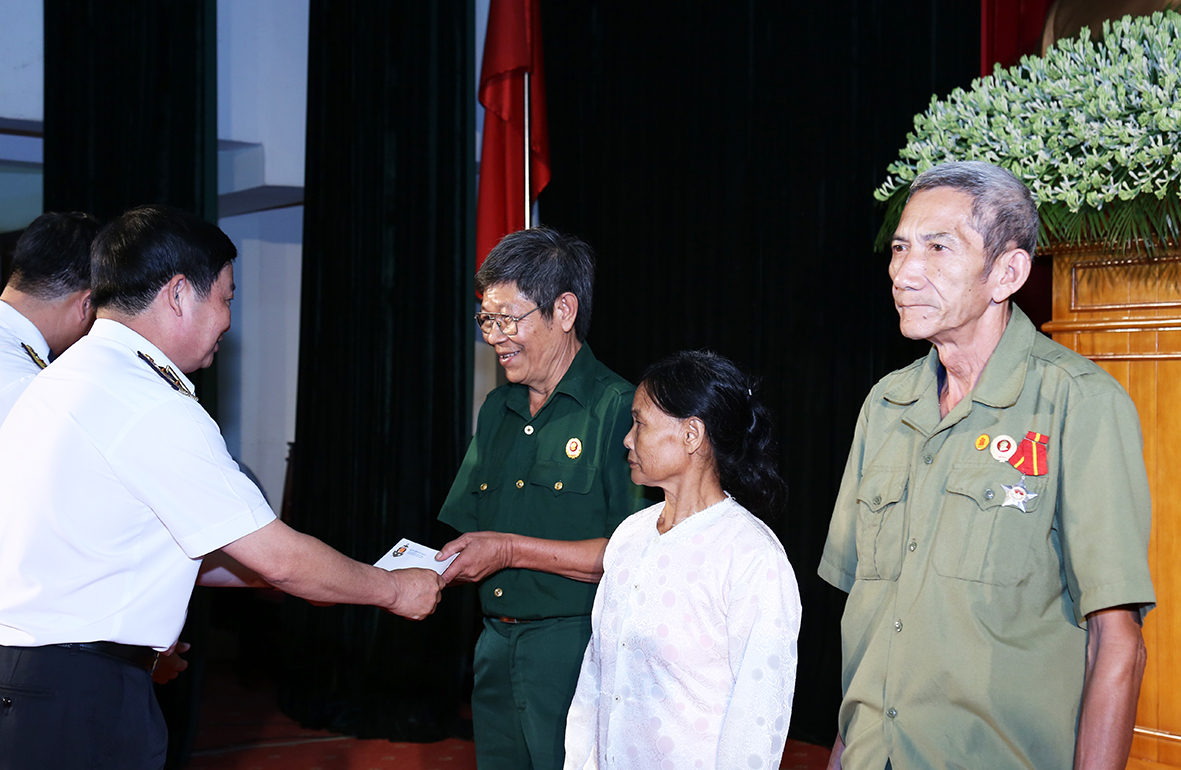 Phó Đô đốc Trần Hoài Trung trao quà của Quân chủng Hải quân đến một số gia đình chính sách tiêu biểu tỉnh Tuyên Quang