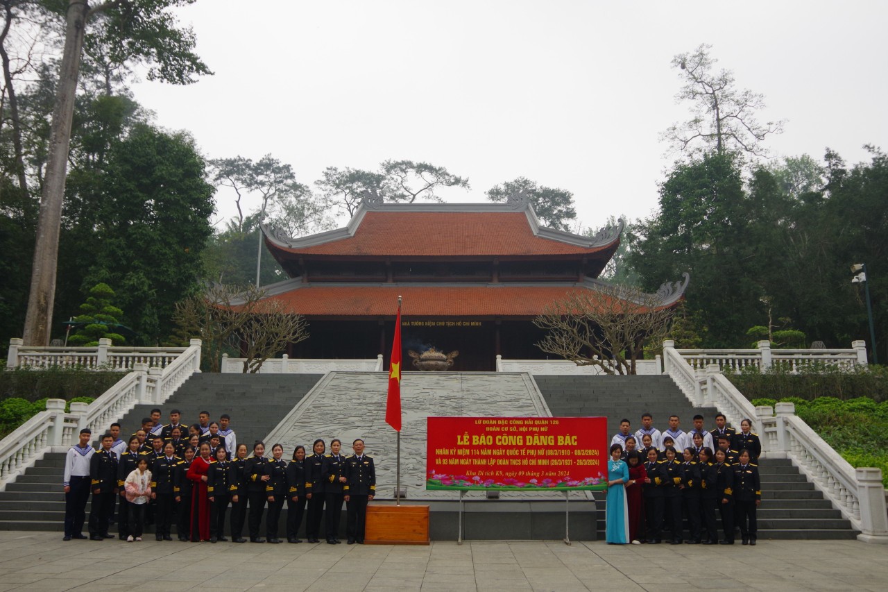 Hướng tới kỷ niệm 58 năm Ngày truyền thống Đặc công Hải quân (13/4/1966 - 13/4/2024), ngày 9/3, Đoàn cơ sở và Hội phụ nữ Lữ đoàn 126 tổ chức dâng hoa tại Lăng Chủ tịch Hồ Chí Minh và báo công với Bác tại Khu di tích K9.
