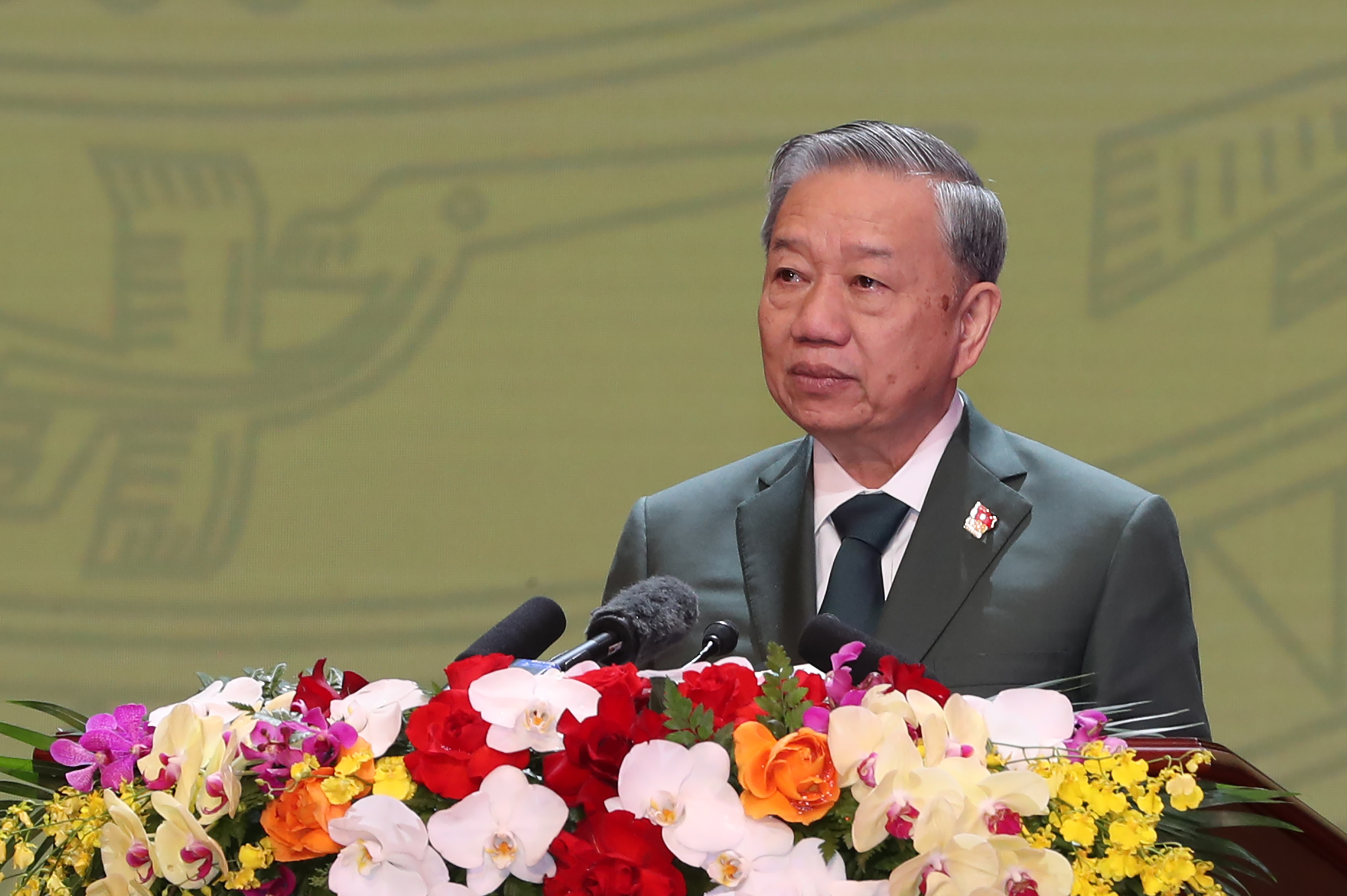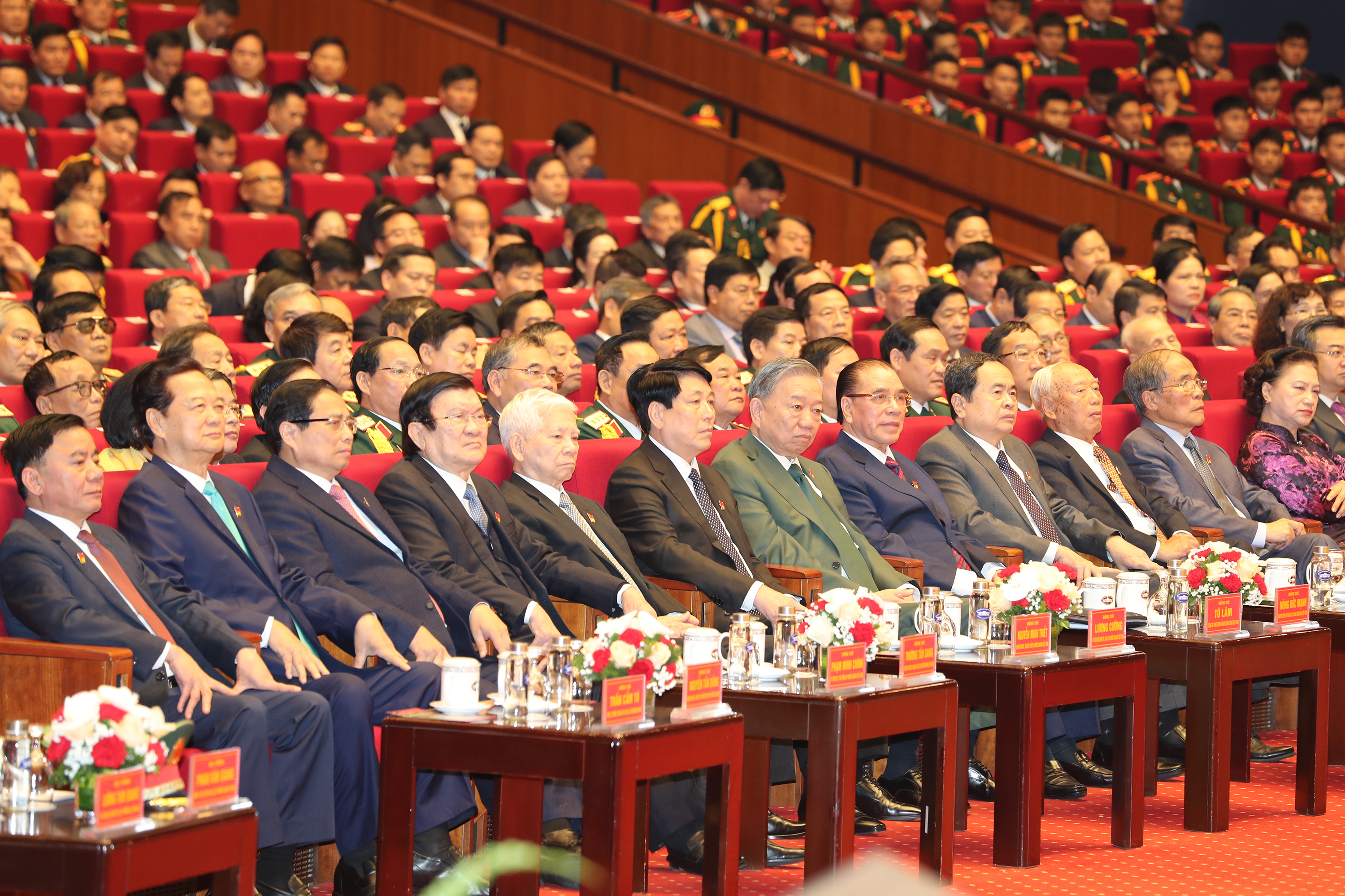 Tổng Bí thư Tô Lâm trân trọng gửi tới các đồng chí lãnh đạo, nguyên lãnh đạo Đảng, Nhà nước, Mặt trận Tổ quốc Việt Nam; các bậc lão thành cách mạng, bà mẹ Việt Nam anh hùng, Anh hùng lực lượng vũ trang nhân dân, Anh hùng lao động; các đồng chí thương binh, bệnh binh, gia đình liệt sĩ, người có công với cách mạng; các tướng lĩnh, sĩ quan, cán bộ, chiến sĩ lực lượng vũ trang; các vị đại biểu, khách quý, bạn bè quốc tế, đồng bào cả nước, kiều bào ta ở nước ngoài những tình cảm thân thiết và lời chúc mừng tốt đẹp nhất.