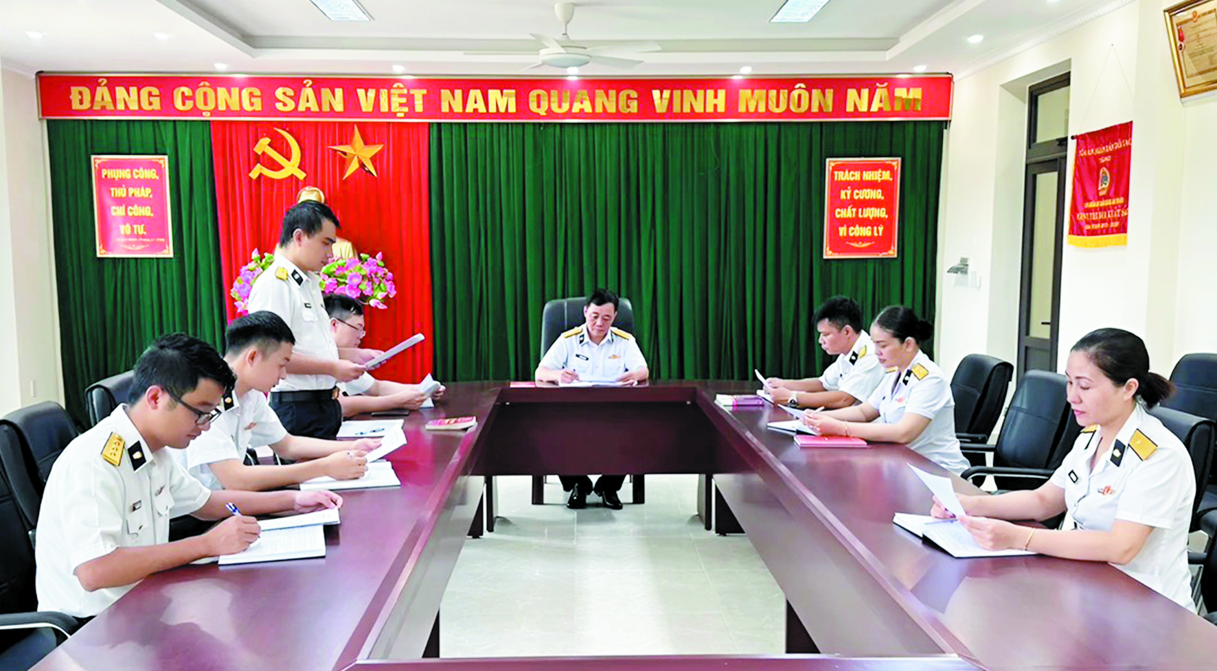 Năm là, thực hiện tốt nhiệm vụ hành chính quân sự. Xây dựng chi bộ TSVM gắn với xây dựng đơn vị VMTD mẫu mực, tiêu biểu; phấn đấu 100% cán bộ, nhân viên hoàn thành tốt nhiệm vụ.