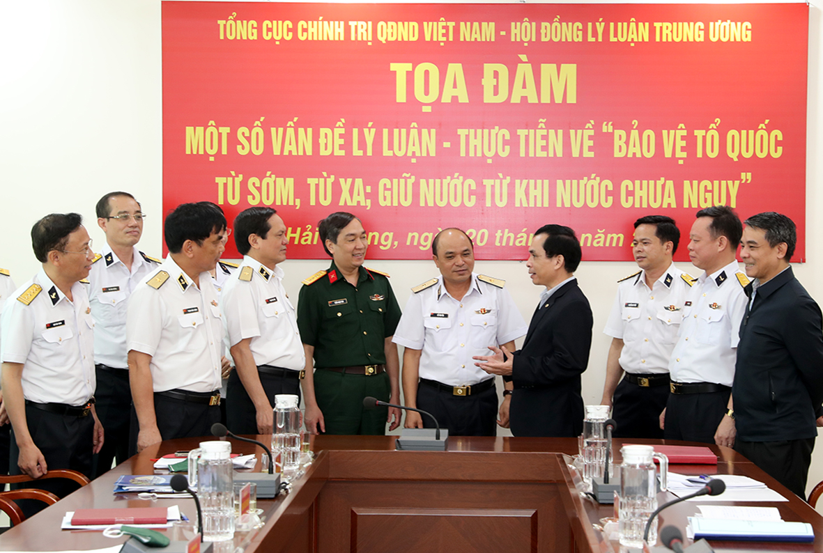 Sáng 20/4, tại Hải Phòng, đoàn công tác của Tổng cục Chính trị Quân đội nhân dân Việt Nam và Hội đồng Lý luận Trung ương do Đại tá Trần Ngọc Anh, Phó Cục trưởng Cục Tuyên huấn làm trưởng đoàn đã đến khảo sát, tọa đàm, nghiên cứu thực tiễn tại Quân chủng Hải quân về một số vấn đề lý luận, thực tiễn "Bảo vệ Tổ quốc từ sớm, từ xa; giữ nước từ khi nước chưa nguy".